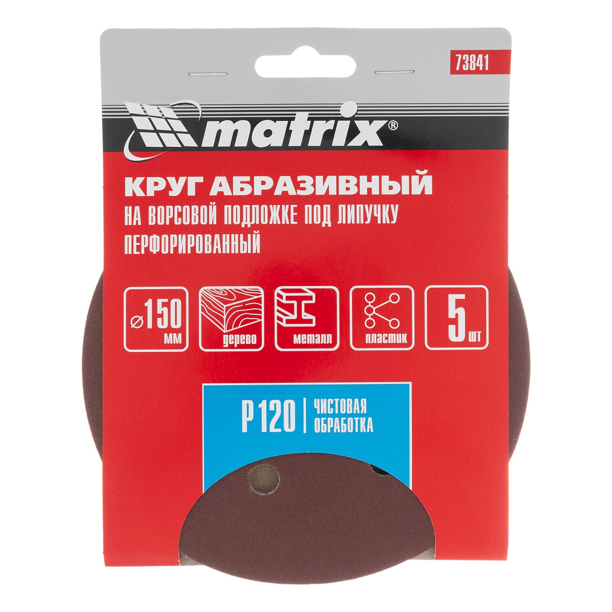 Круг абразивный на ворсовой подложке под "липучку", перфорированный, P 120, 150 мм, 5 шт Matrix