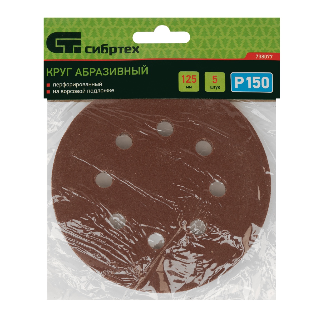 Купить Круг абразивный на ворсовой подложке под "липучку", перфорированный, P 150, 125 мм, 5 шт Сибртех V2994 по лучшей цене с доставкой - интернет магазин №1 в России