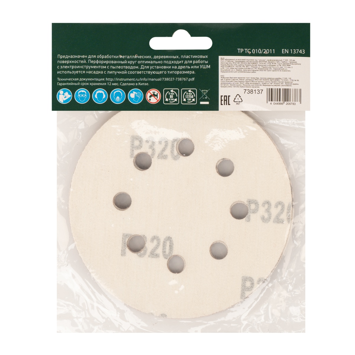 Наличие клапана для сброса давления Круг абразивный на ворсовой подложке под "липучку", перфорированный, P 320, 125 мм, 5 шт Сибртех