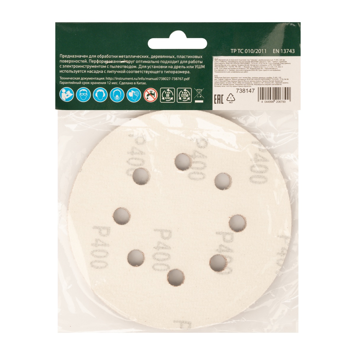 Купить Круг абразивный на ворсовой подложке под "липучку", перфорированный, P 400, 125 мм, 5 шт Сибртех V3008 по лучшей цене с доставкой - интернет магазин №1 в России