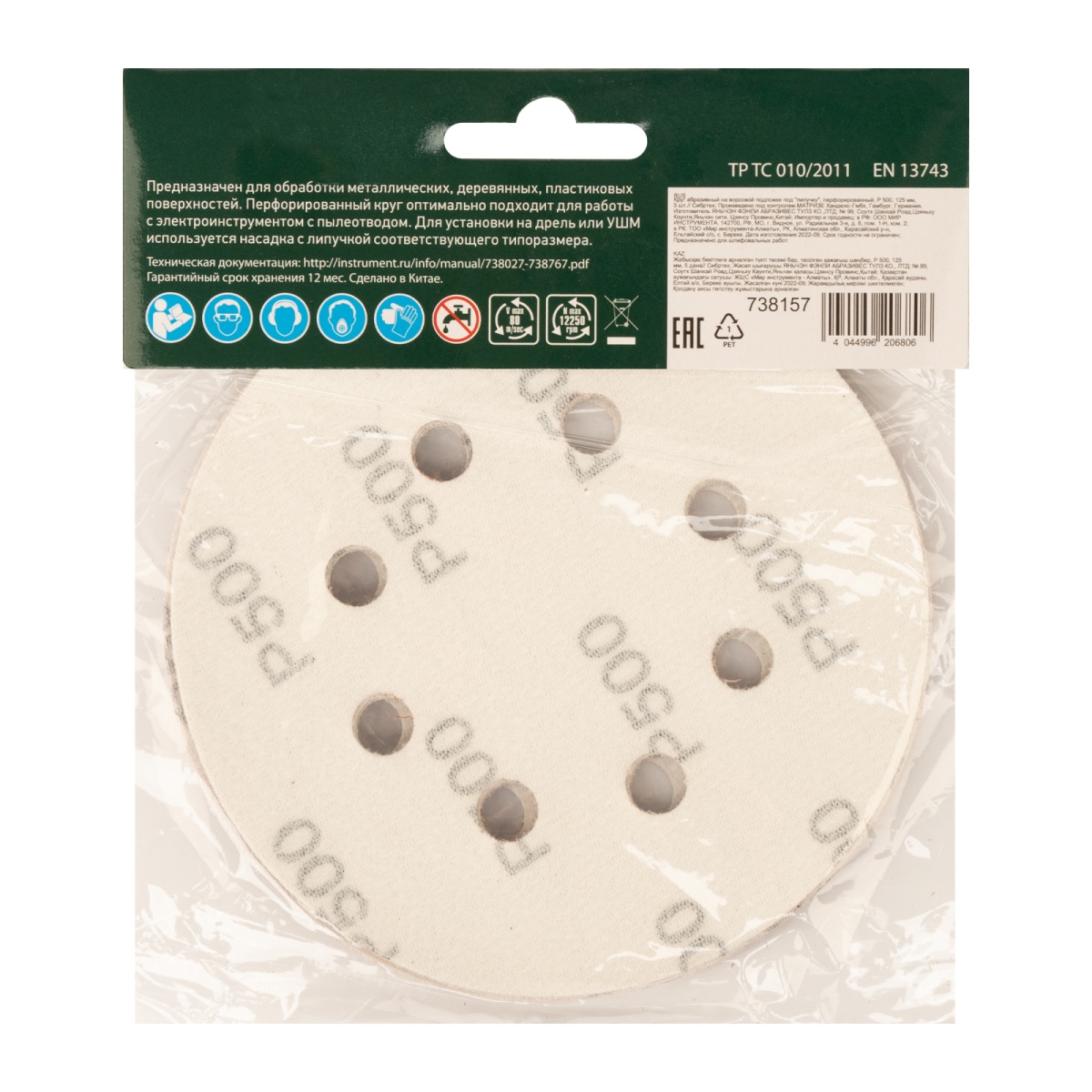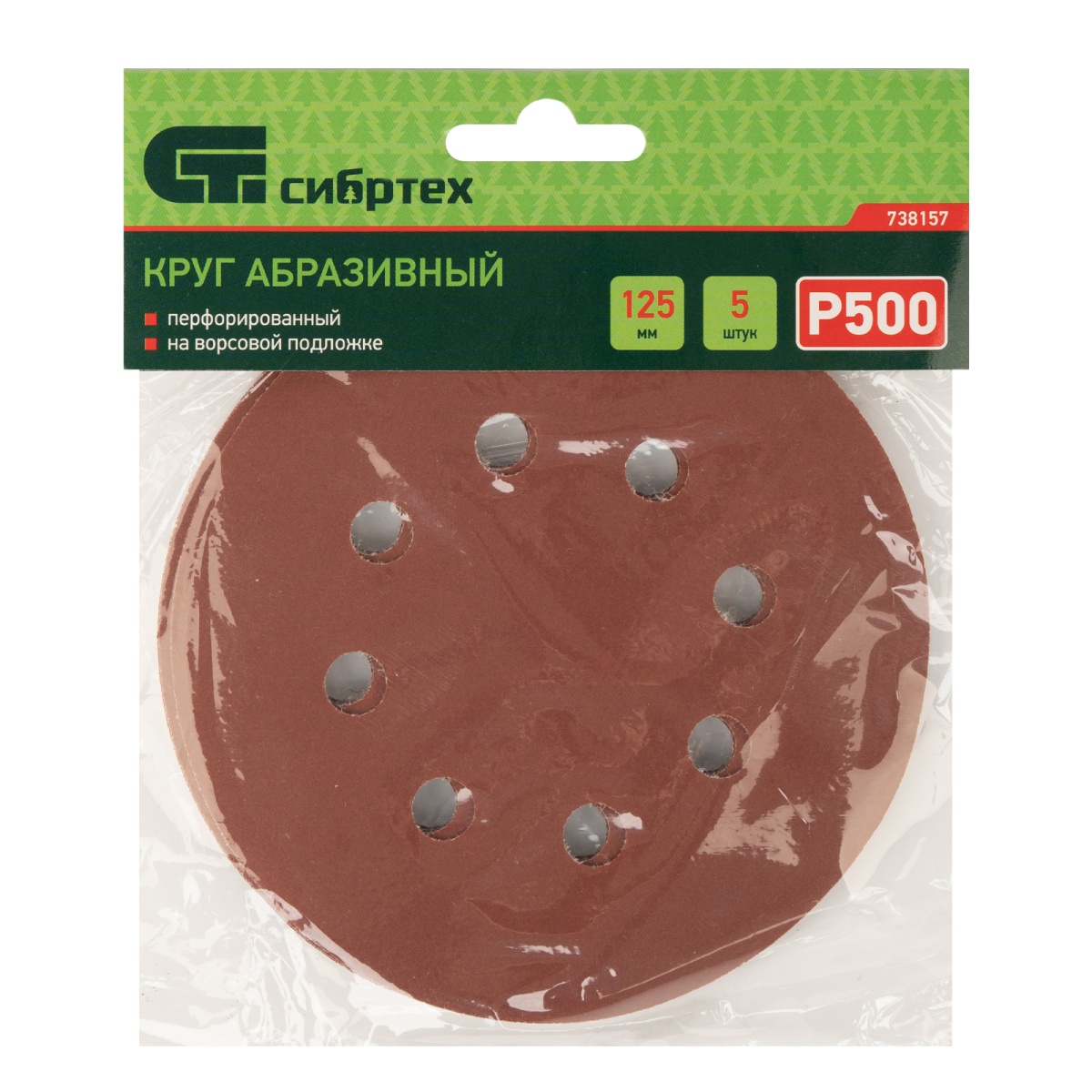Купить Круг абразивный на ворсовой подложке под "липучку", перфорированный, P 500, 125 мм, 5 шт Сибртех V3009 по лучшей цене с доставкой - интернет магазин №1 в России