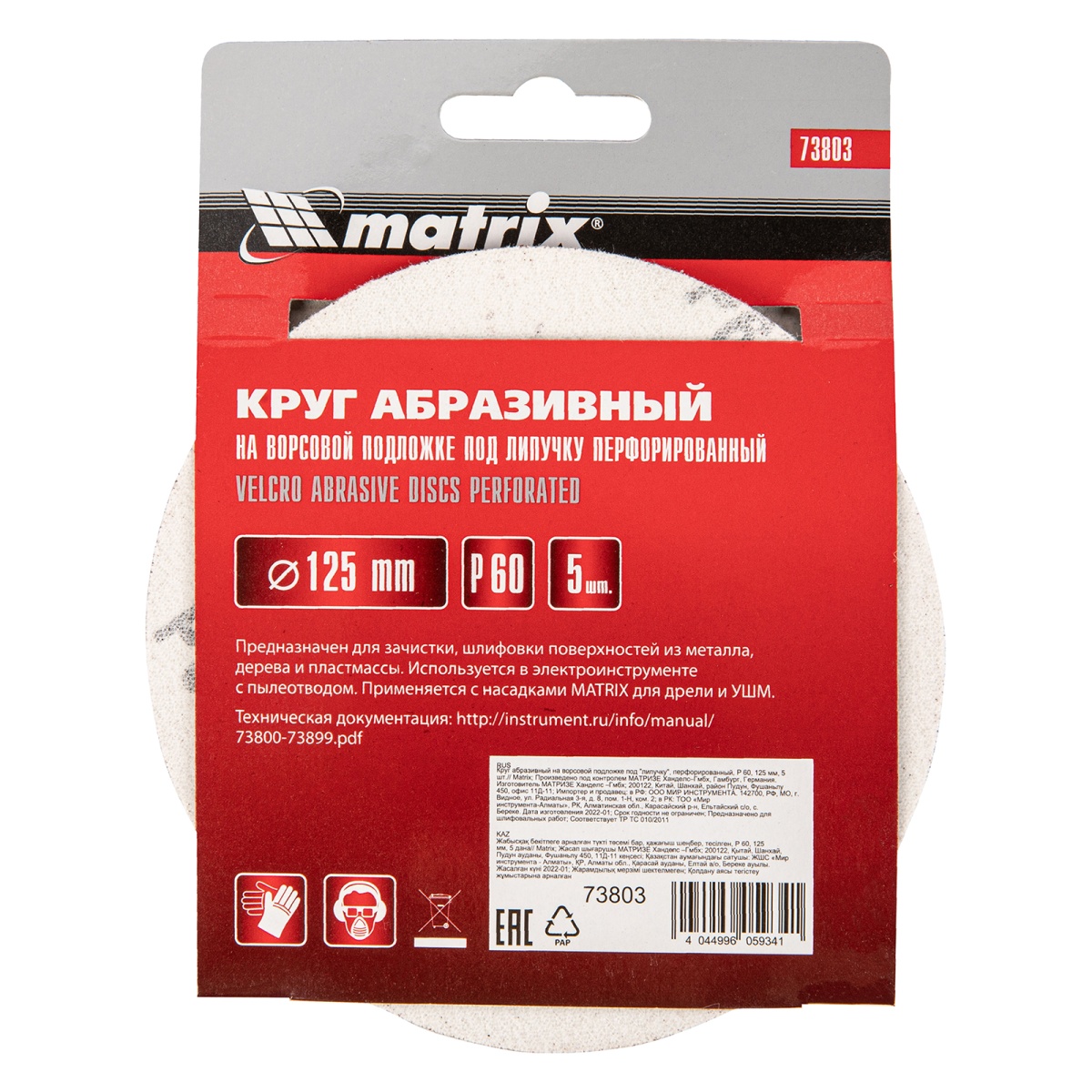 Купить Круг абразивный на ворсовой подложке под "липучку", перфорированный, P 60, 125 мм, 5 шт Matrix V3010 по лучшей цене с доставкой - интернет магазин №1 в России