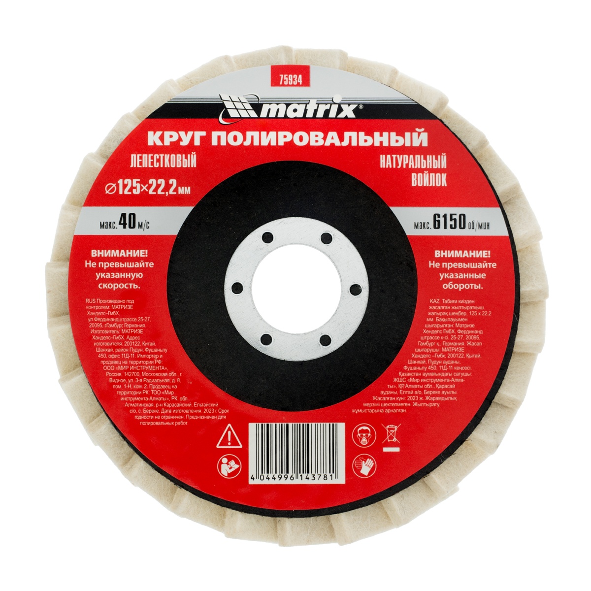 Купить Круг полировальный лепестковый из натурального войлока 125 х 22.2 мм Matrix V3194 по лучшей цене с доставкой - интернет магазин №1 в России