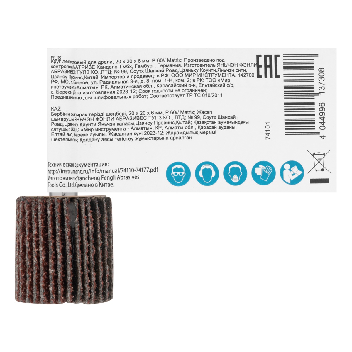 Купить Круг лепестковый для дрели, 20 х 20 х 6 мм, P 60 Matrix V3021 по лучшей цене с доставкой - интернет магазин №1 в России