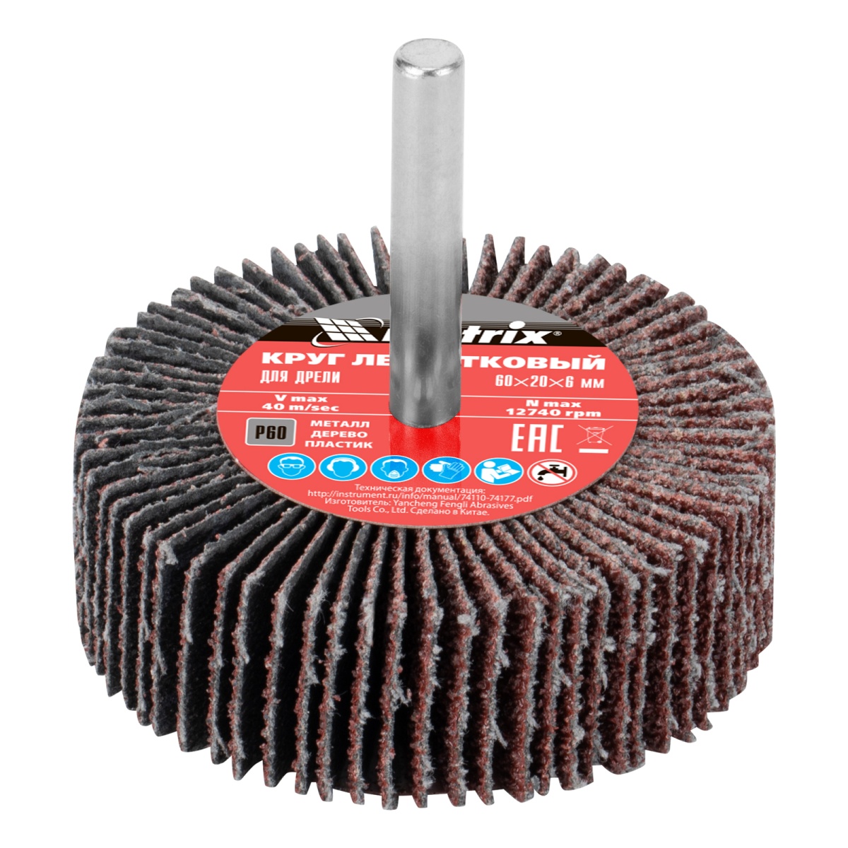 Купить Круг лепестковый для дрели, 60 х 20 х 6 мм, P 60 Matrix V3037 по лучшей цене с доставкой - интернет магазин №1 в России