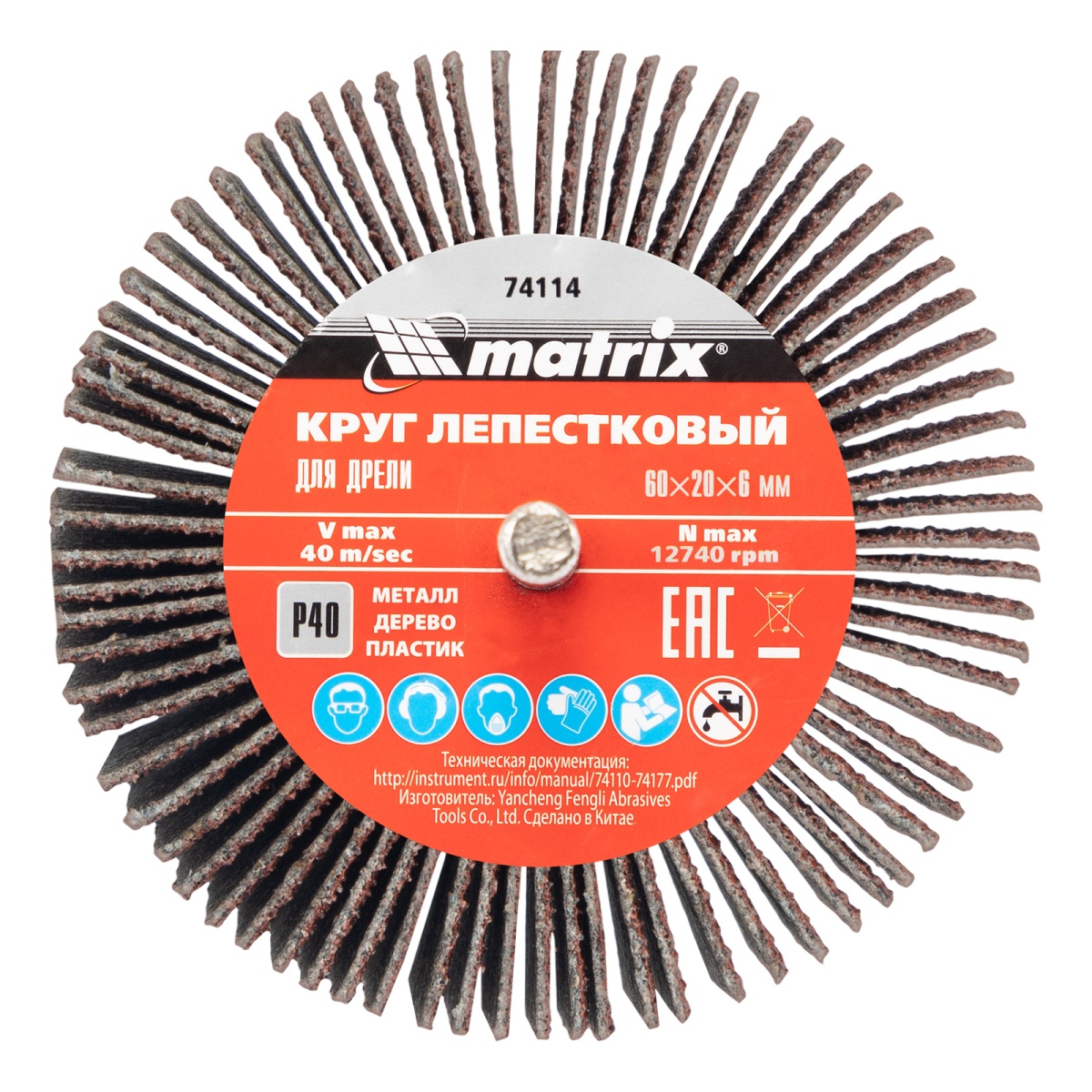 Купить Круг лепестковый для дрели, 60 х 20 х 6 мм, P 80 Matrix V3038 по лучшей цене с доставкой - интернет магазин №1 в России
