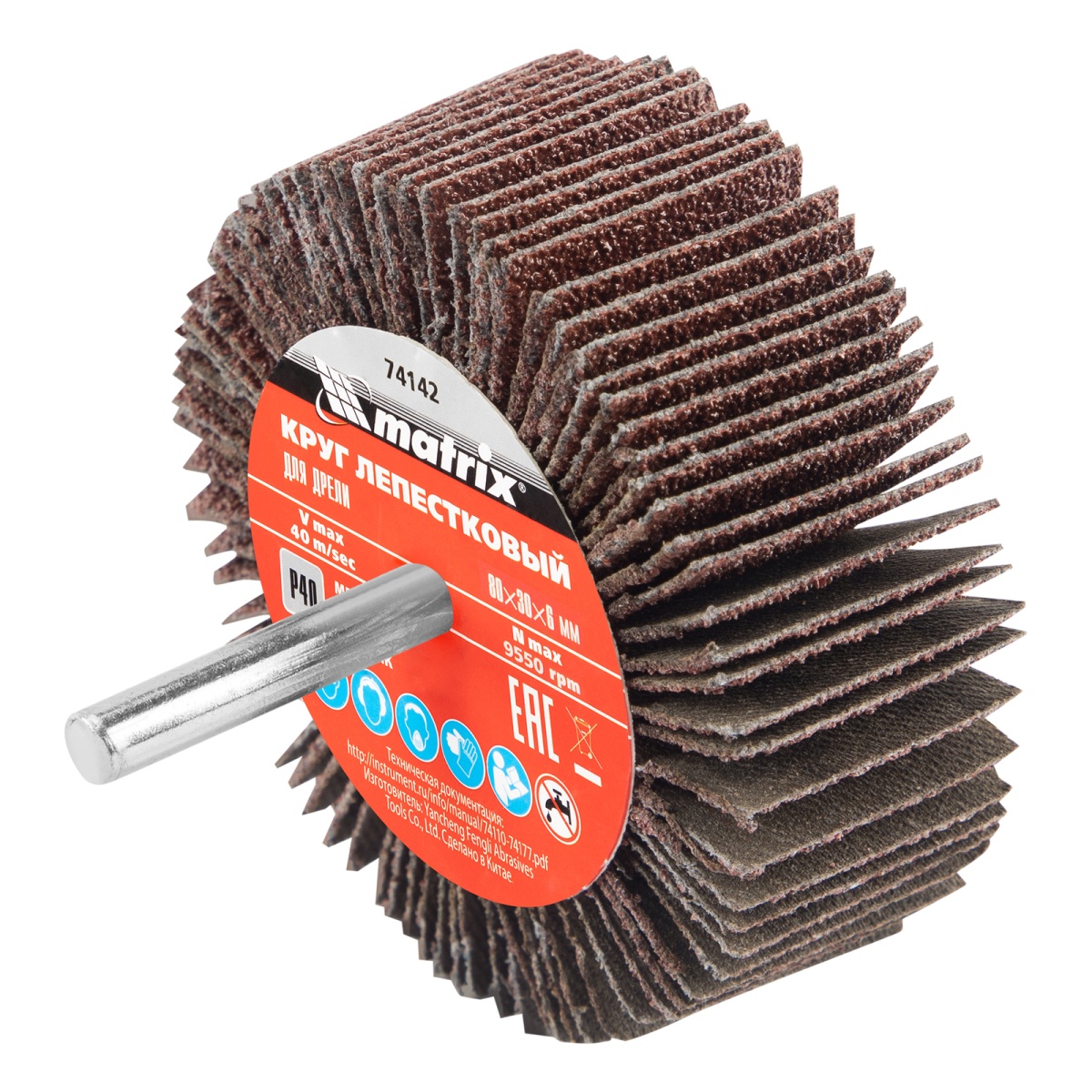 Круг лепестковый для дрели, 80 х 30 х 6 мм, P 60 Matrix