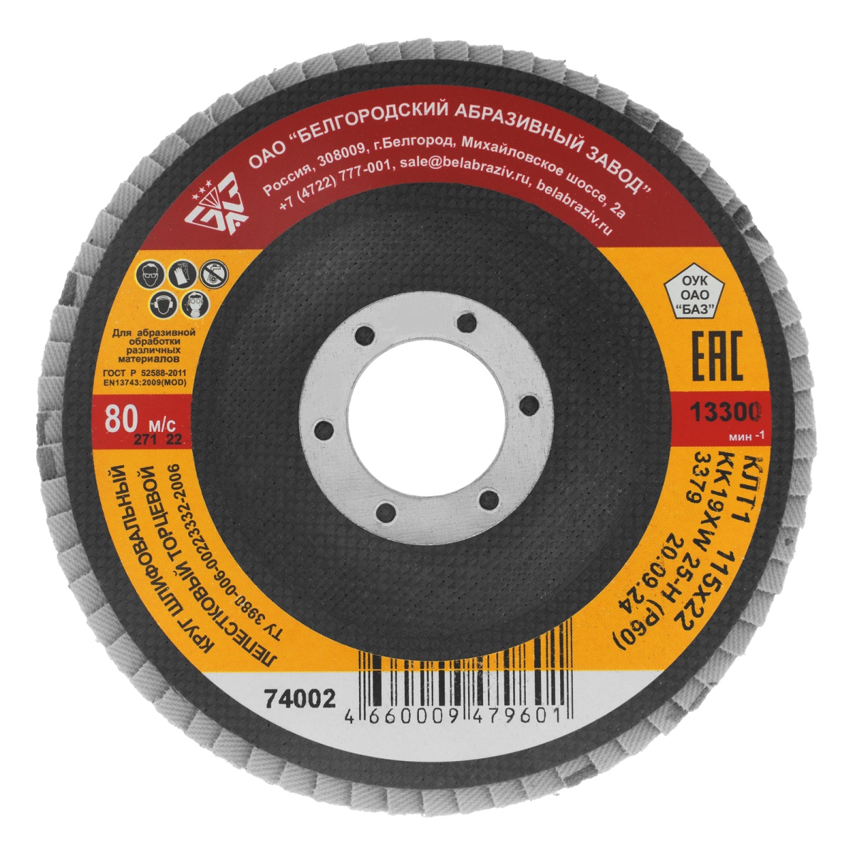 Круг лепестковый торцевой КЛТ-1, зернистость P 60(25Н) 115 х 22.2 мм, "БАЗ"