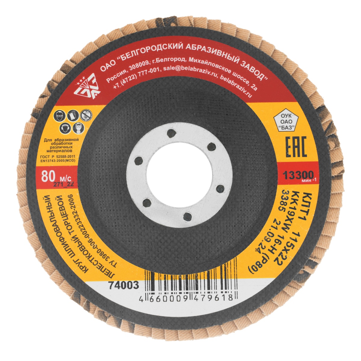 Круг лепестковый торцевой КЛТ-1, зернистость Р 80(16Н) 115 х 22.2 мм, "БАЗ"
