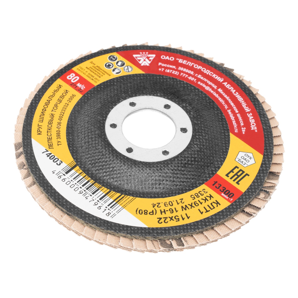 Купить Круг лепестковый торцевой КЛТ-1, зернистость Р 80(16Н) 115 х 22.2 мм, "БАЗ" V3057 по лучшей цене с доставкой - интернет магазин №1 в России