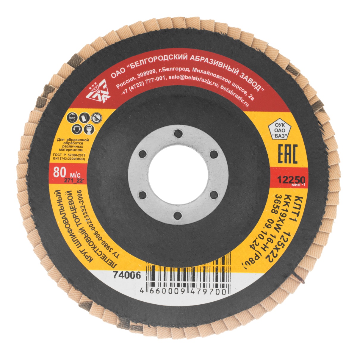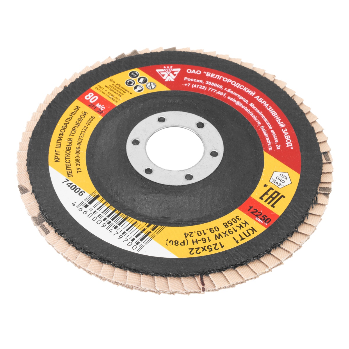 Круг лепестковый торцевой КЛТ-1, зернистость Р 80(16Н) 125 х 22.2 мм, "БАЗ"