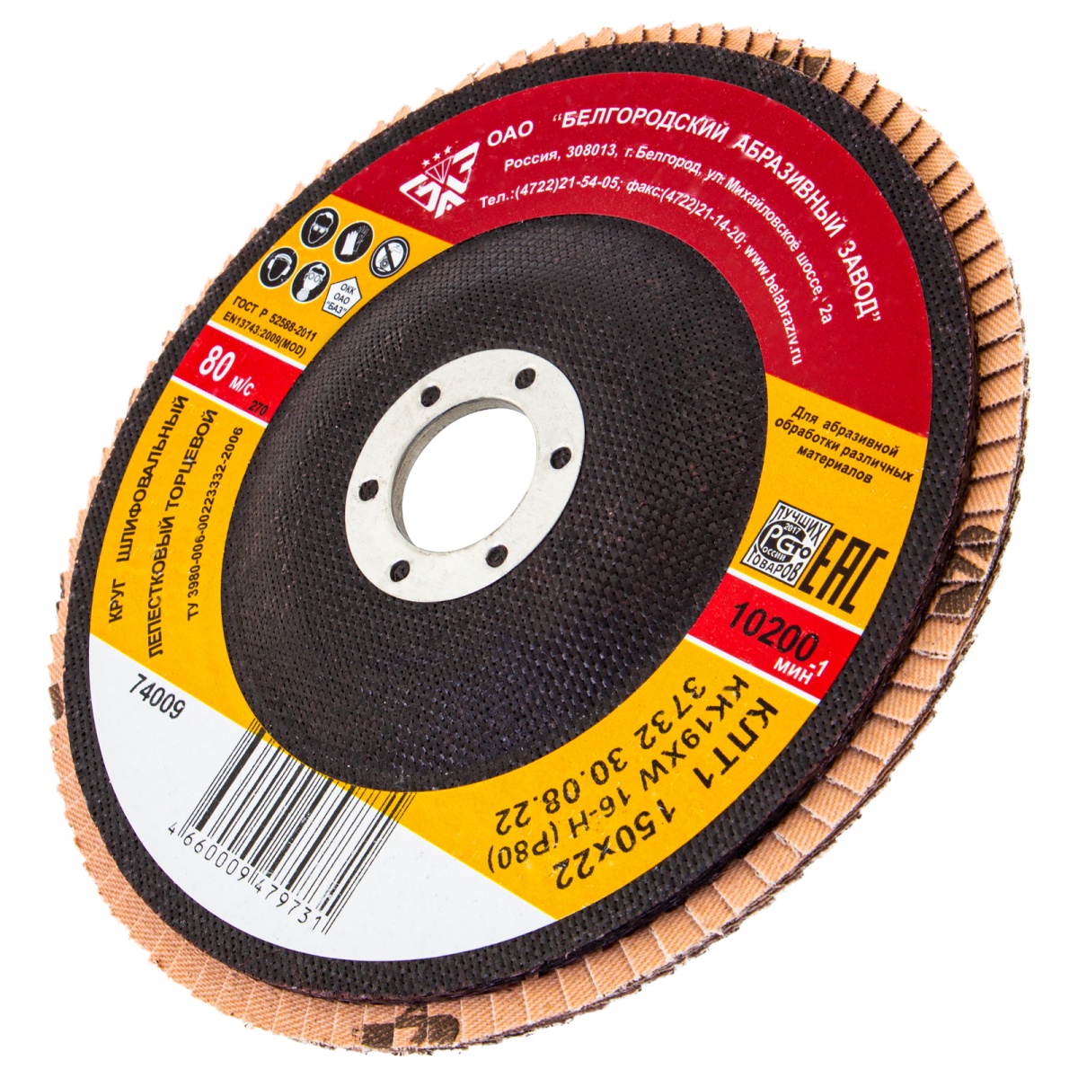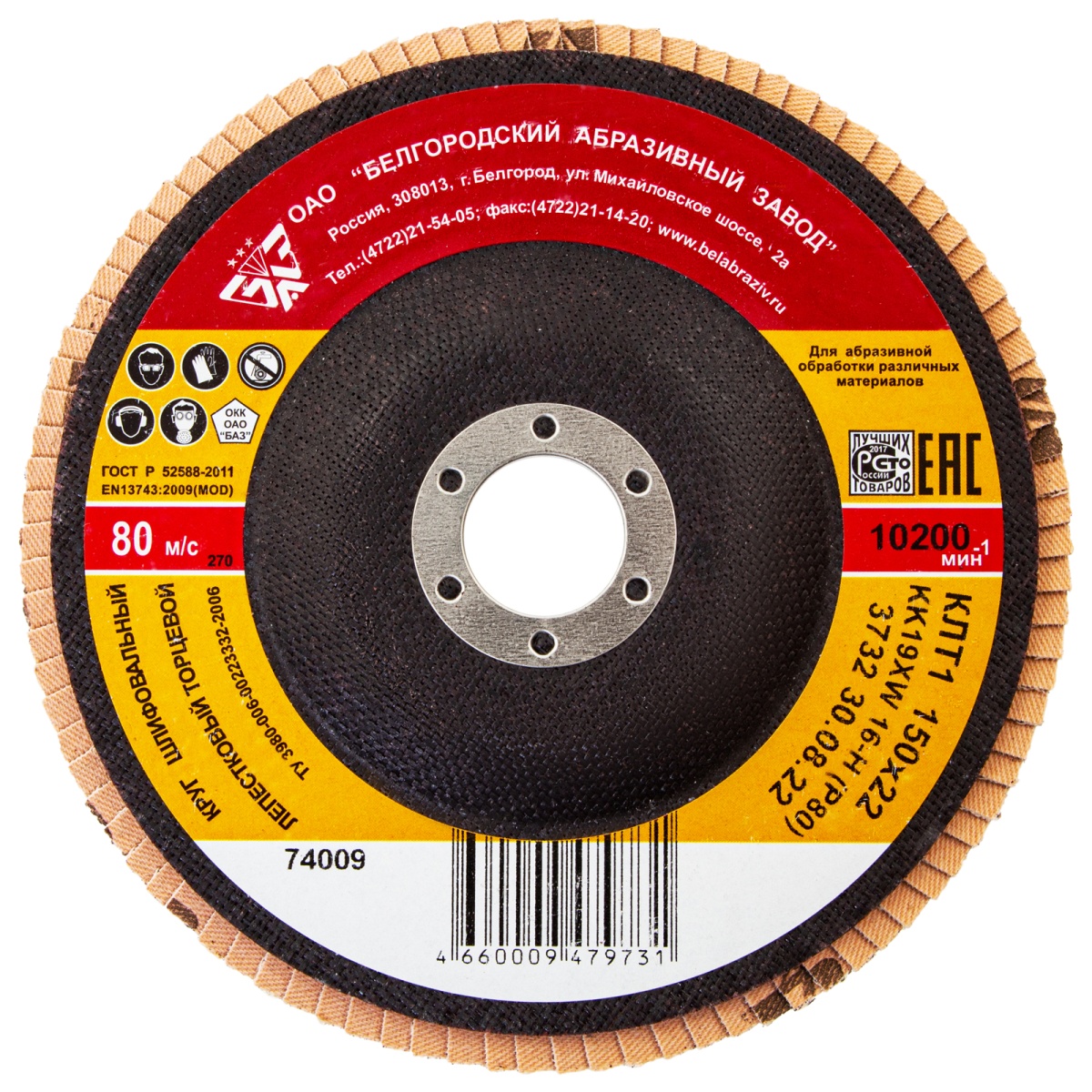 Купить Круг лепестковый торцевой КЛТ-1, зернистость Р 80(16Н) 150 х 22.2 мм, "БАЗ" V3059 по лучшей цене с доставкой - интернет магазин №1 в России