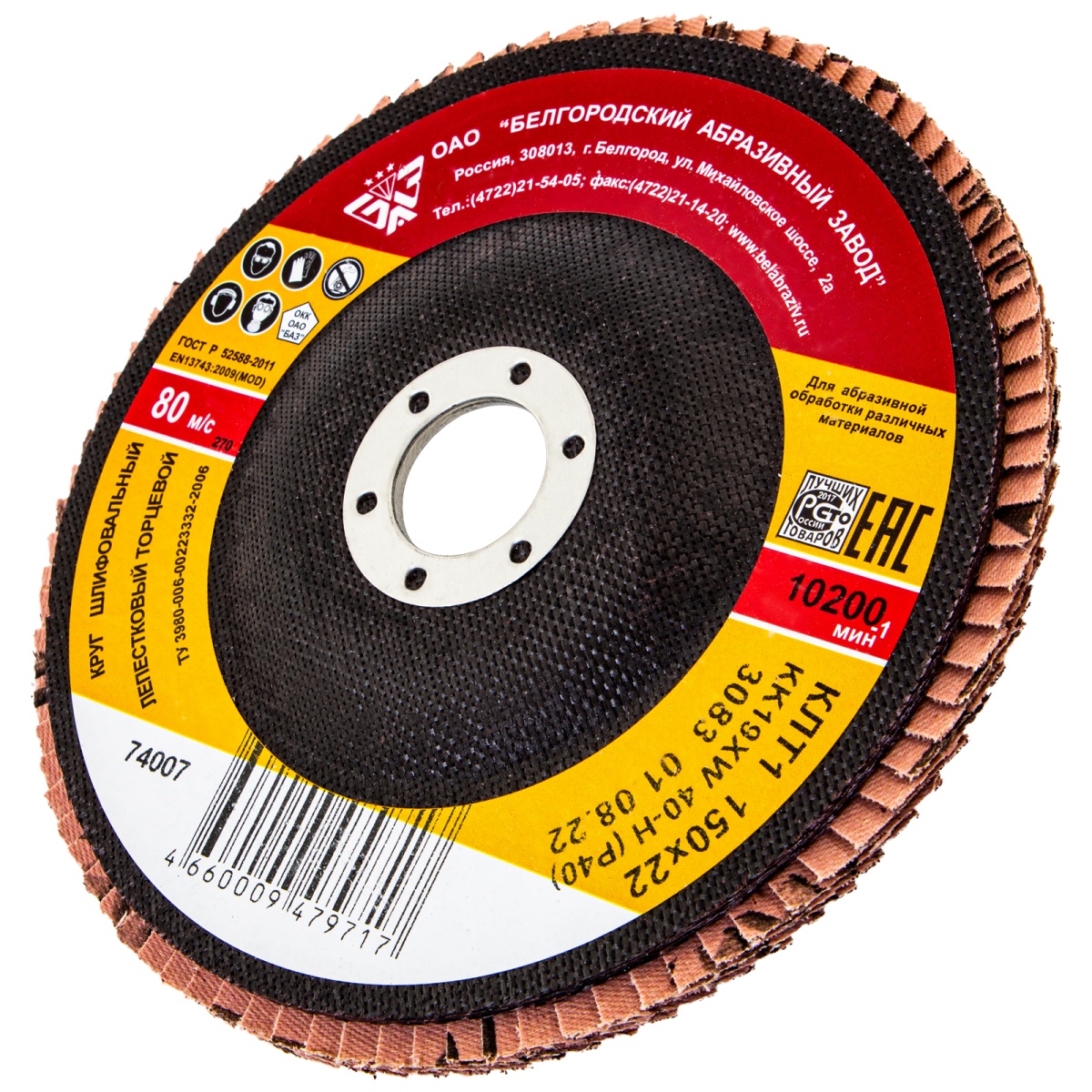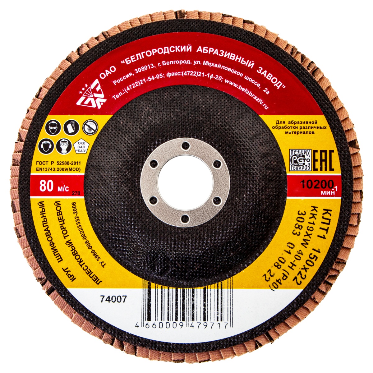 Купить Круг лепестковый торцевой КЛТ-1, зернистость Р40(40Н) 150 х 22.2 мм, "БАЗ" V3063 по лучшей цене с доставкой - интернет магазин №1 в России