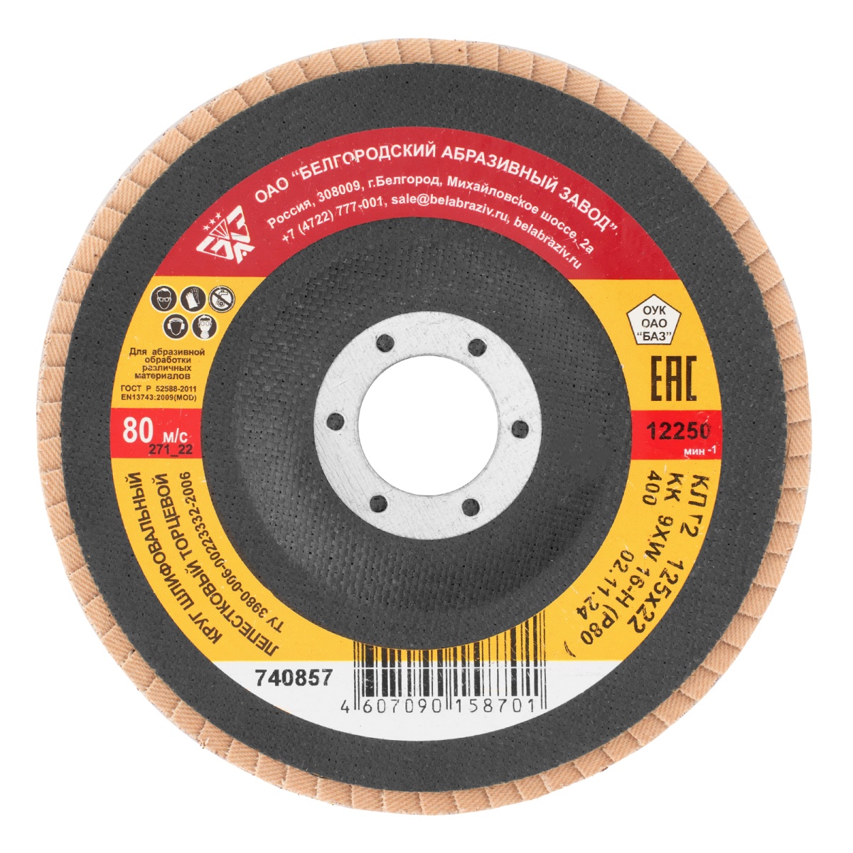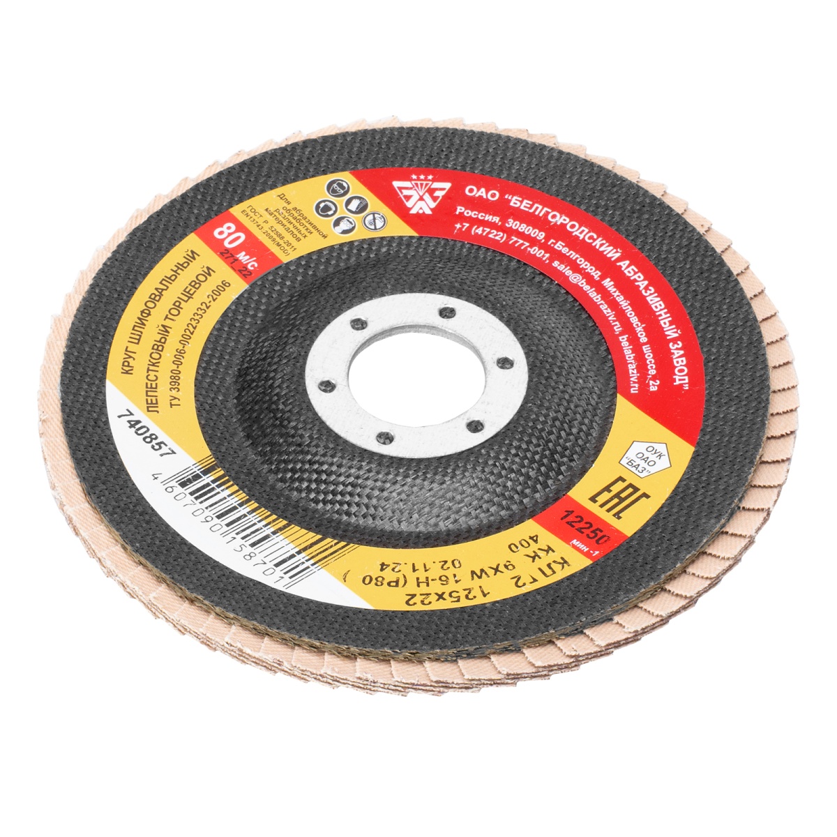 Наличие клапана для сброса давления Круг лепестковый торцевой КЛТ-2, зернистость Р 80, 125 х 22.2 мм