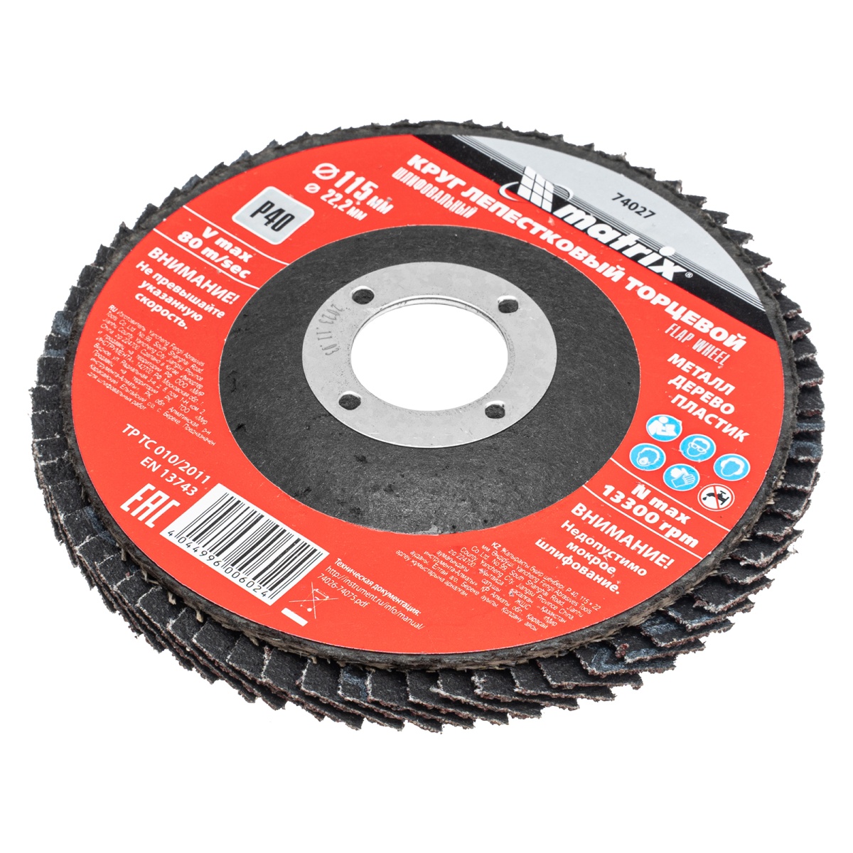 Купить Круг лепестковый торцевой, P 40, 115 х 22.2 мм Matrix V3071 по лучшей цене с доставкой - интернет магазин №1 в России