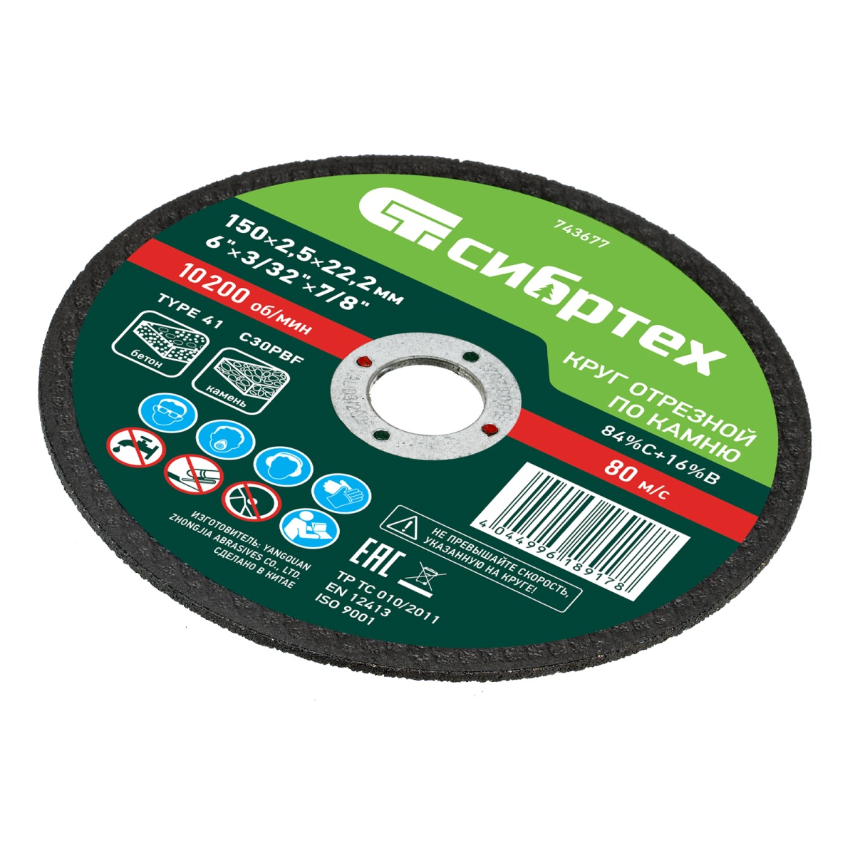 Купить Круг отрезной по камню, 150 х 2,5 х 22,2 мм Сибртех V3082 по лучшей цене с доставкой - интернет магазин №1 в России