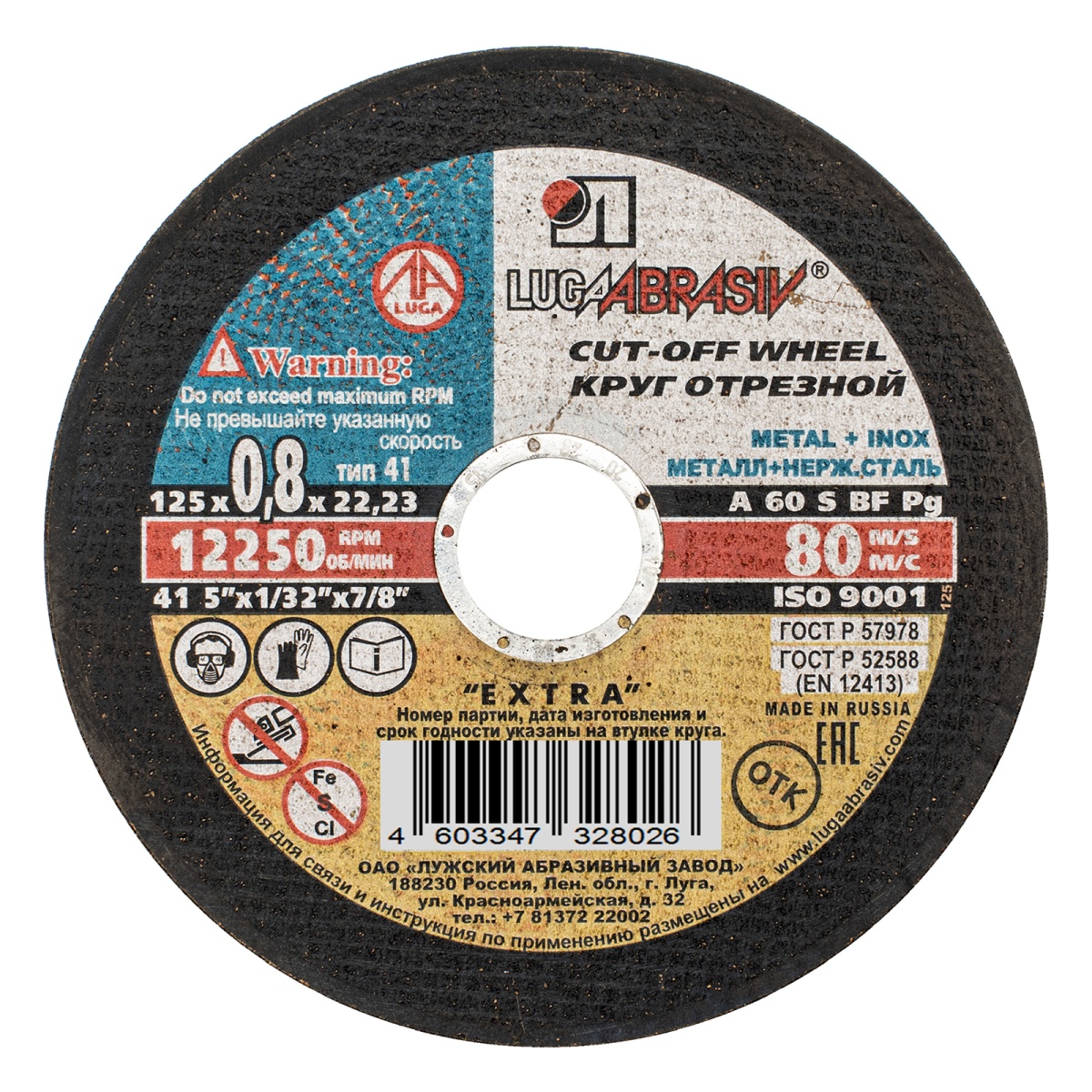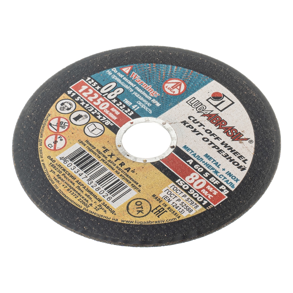 Купить Круг отрезной по металлу, 125 х 0.8 х 22 мм "Луга" V3110 по лучшей цене с доставкой - интернет магазин №1 в России
