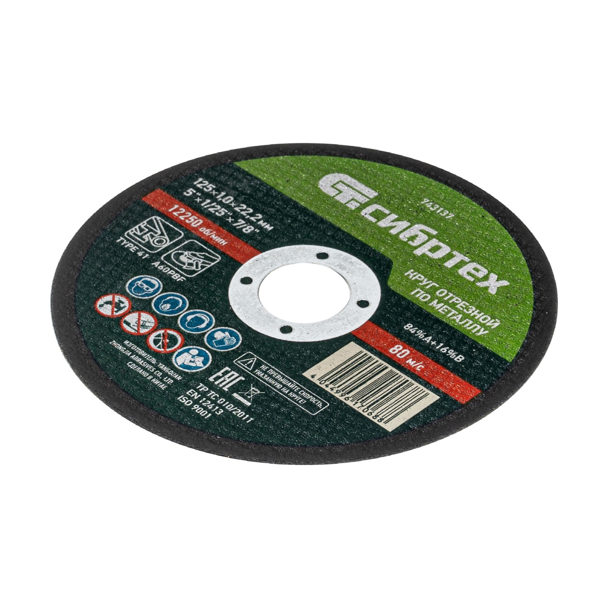 Купить Круг отрезной по металлу, 125 х 1.0 х 22.2 мм, 84%A+16%B Сибртех V3121 по лучшей цене с доставкой - интернет магазин №1 в России