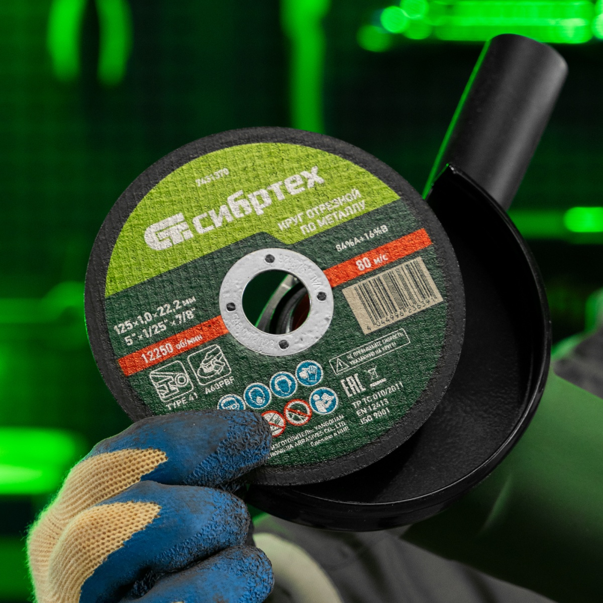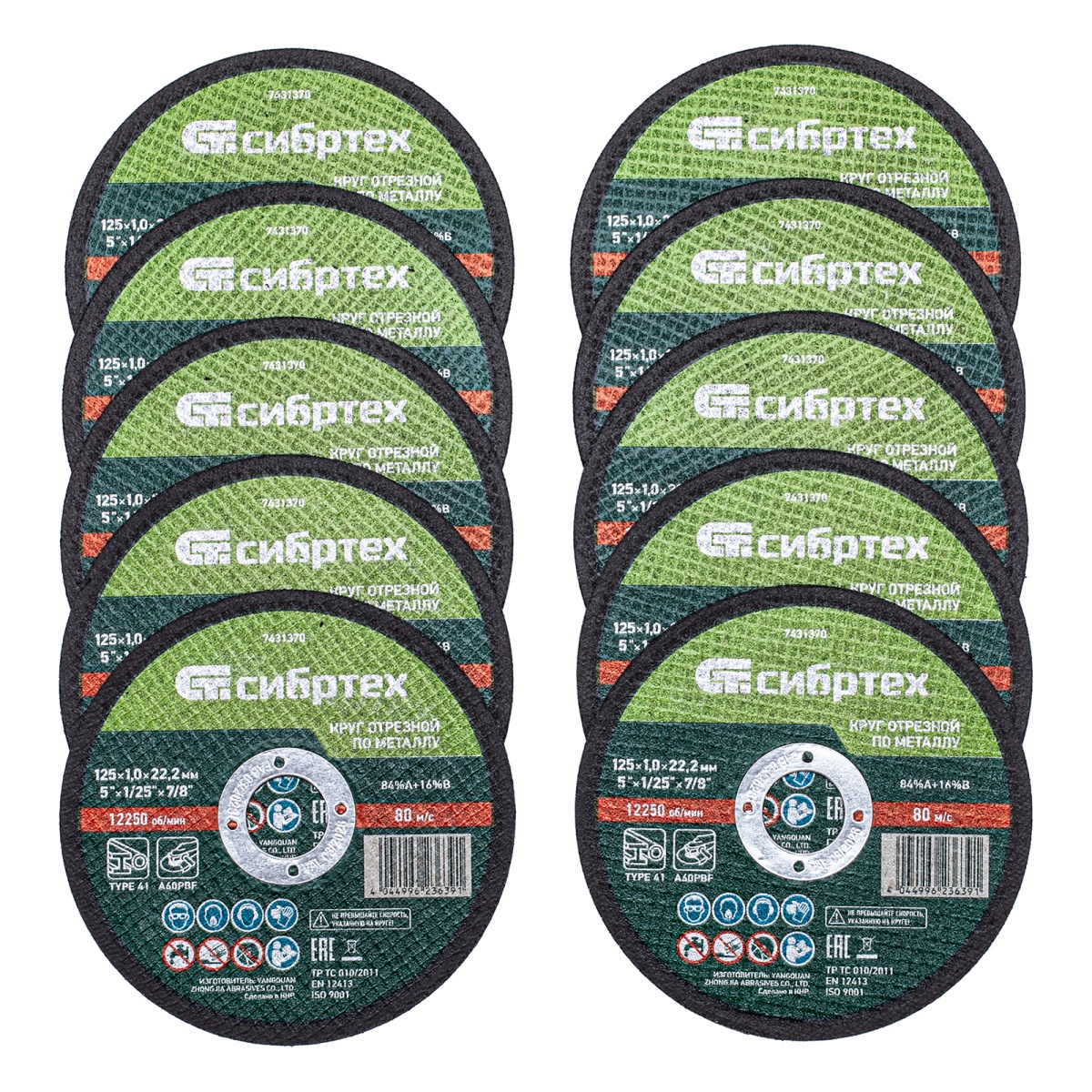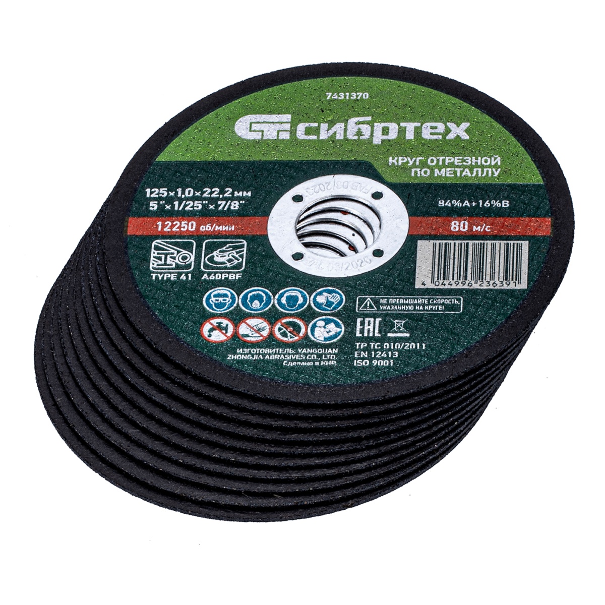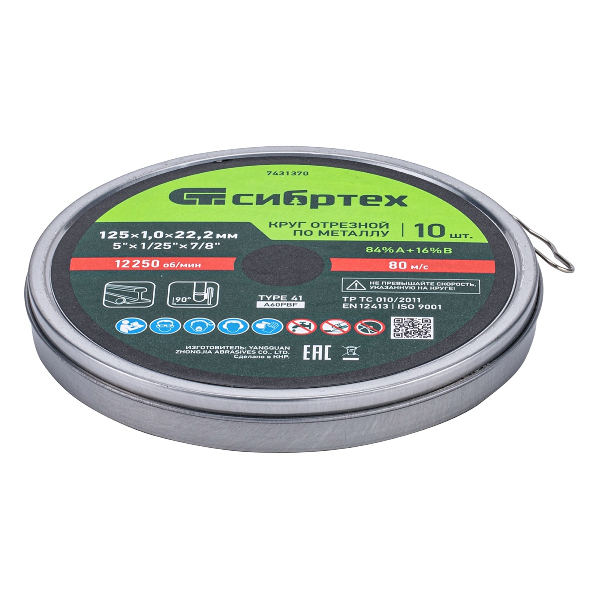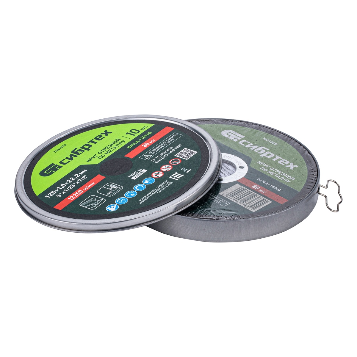 Купить Круг отрезной по металлу, 125 х 1,0 х 22,2 мм, 84%A+16%B, в метал.банке, 10 шт. Сибртех V3113 по лучшей цене с доставкой - интернет магазин №1 в России