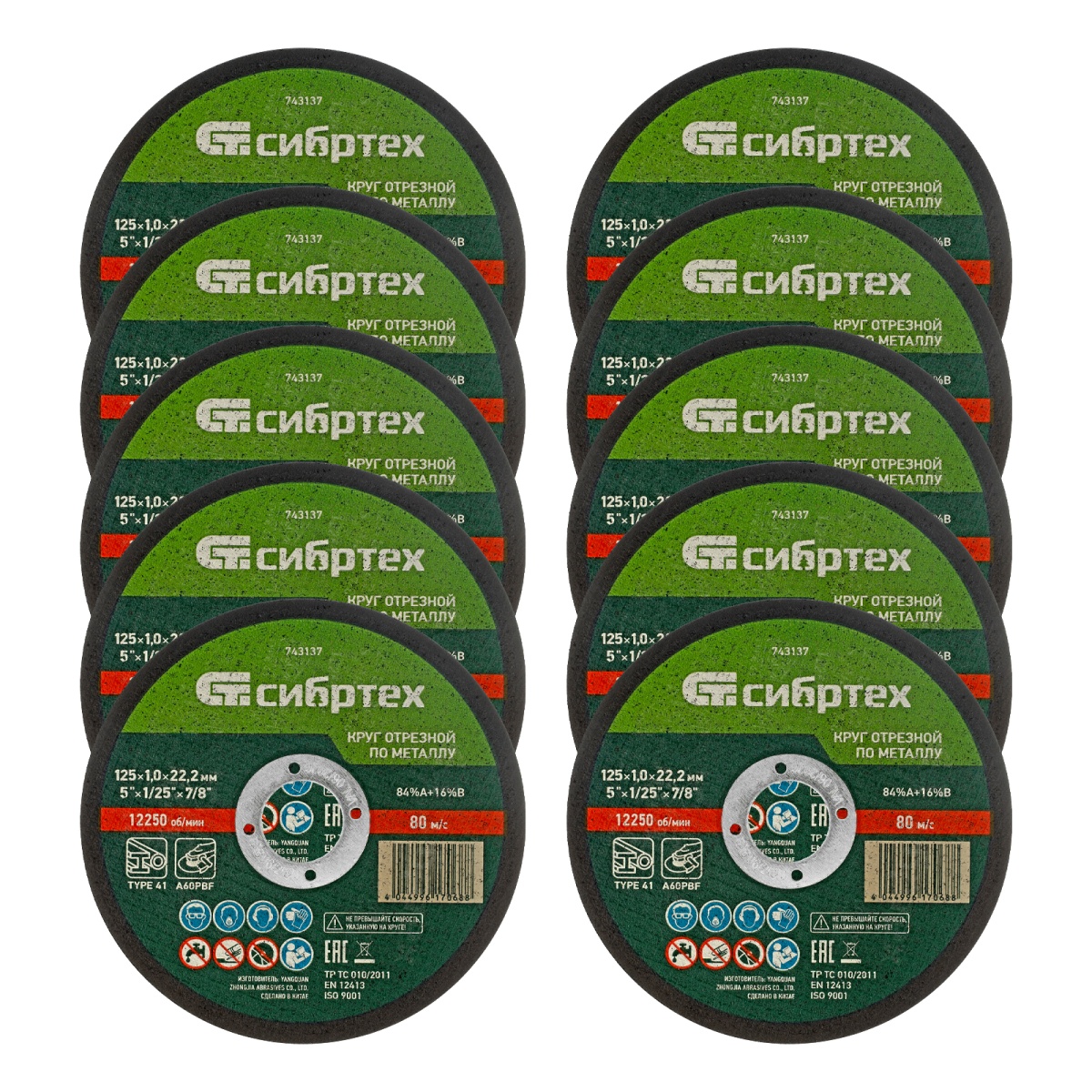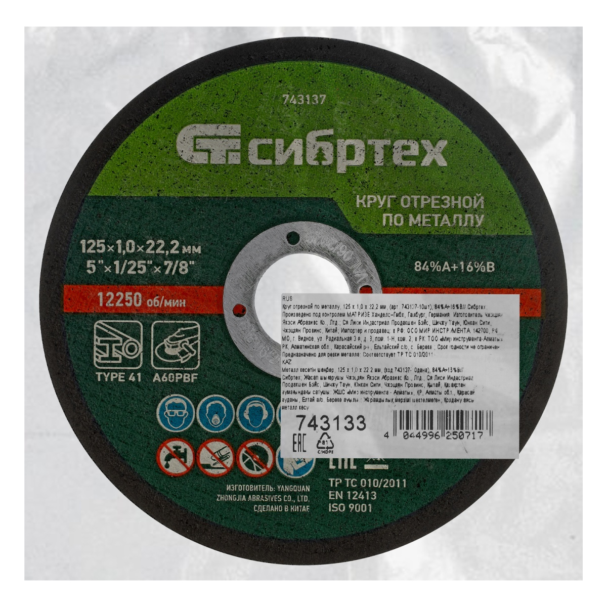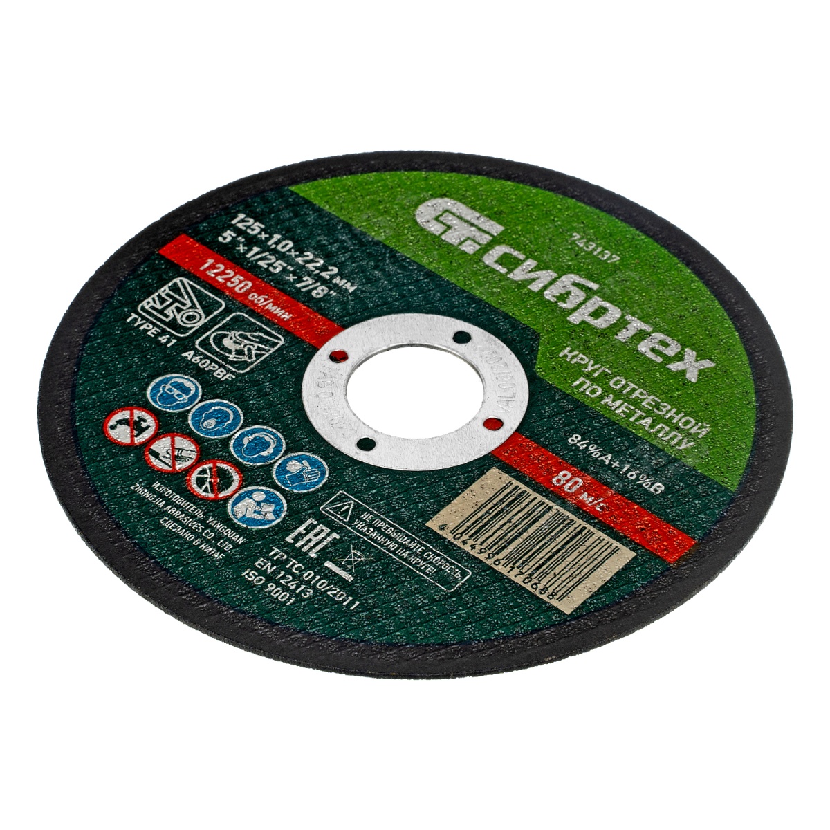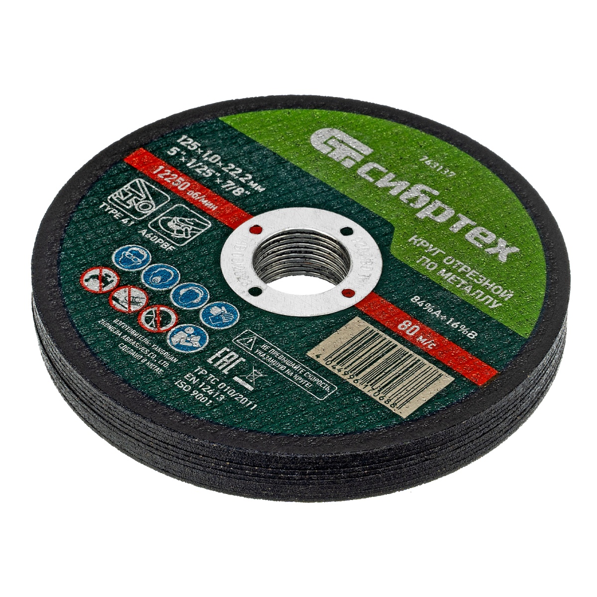 Купить Круг отрезной по металлу, 125 х 1,0 х 22,2 мм, 84%A+16%B, в пленке, 10 шт Сибртех V3114 по лучшей цене с доставкой - интернет магазин №1 в России