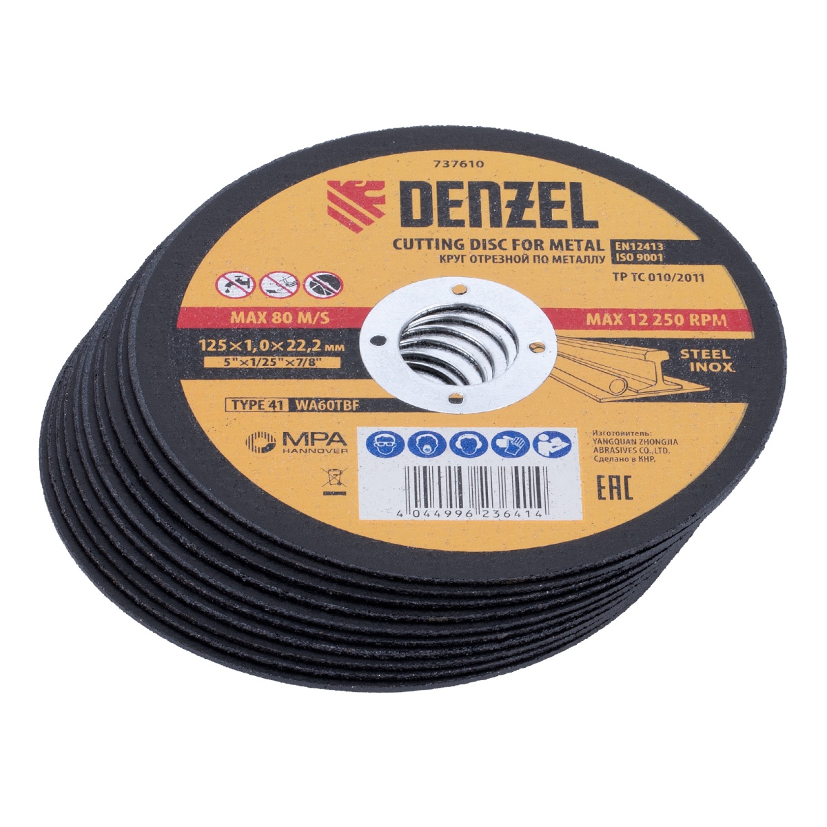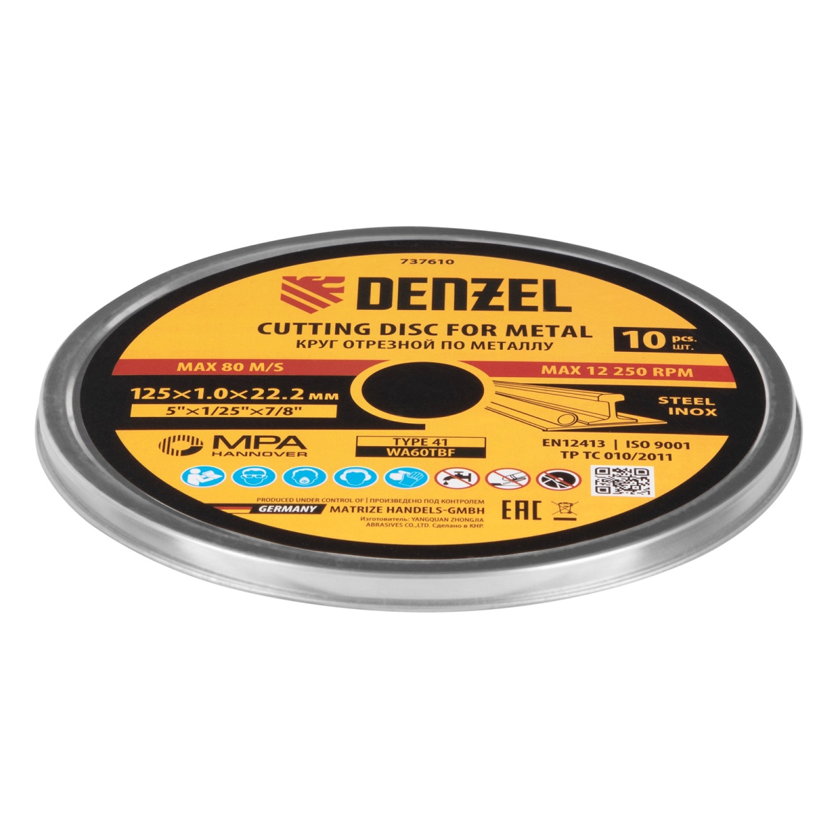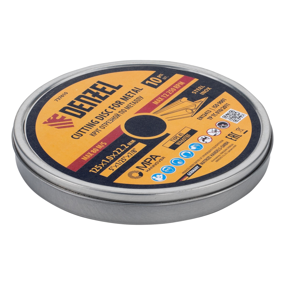 Купить Круг отрезной по металлу, 125 х 1,0 х 22,2 мм, WA60TBF, в метал.банке, 10 шт. Denzel V3115 по лучшей цене с доставкой - интернет магазин №1 в России