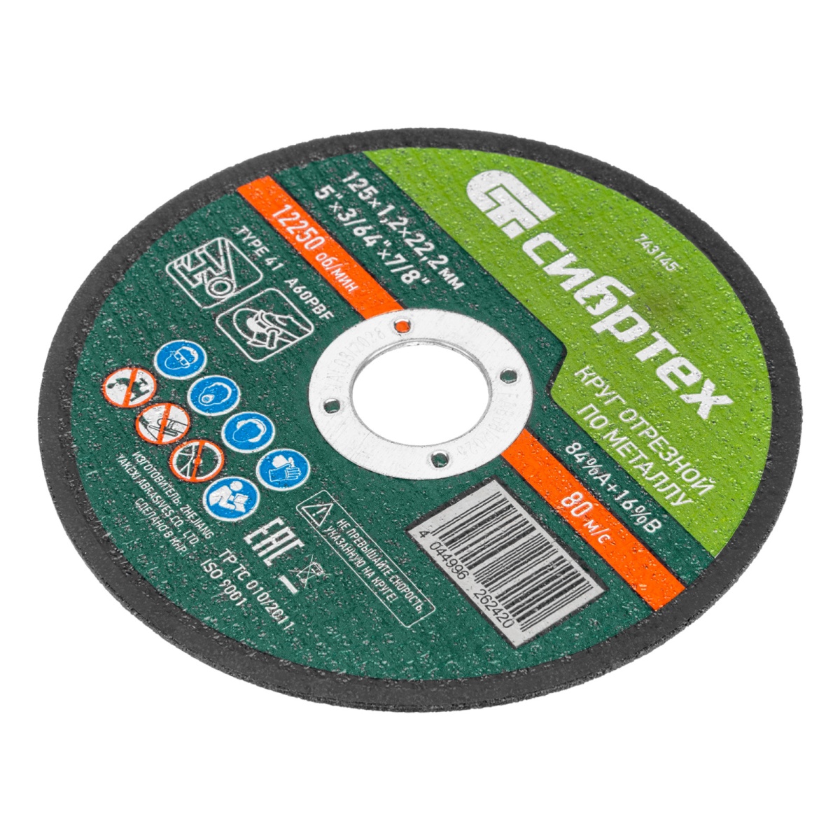 Наличие клапана для сброса давления Круг отрезной по металлу, 125 х 1,2 х 22,2 мм, 84%A+16%B, в пленке, 10 шт Сибртех