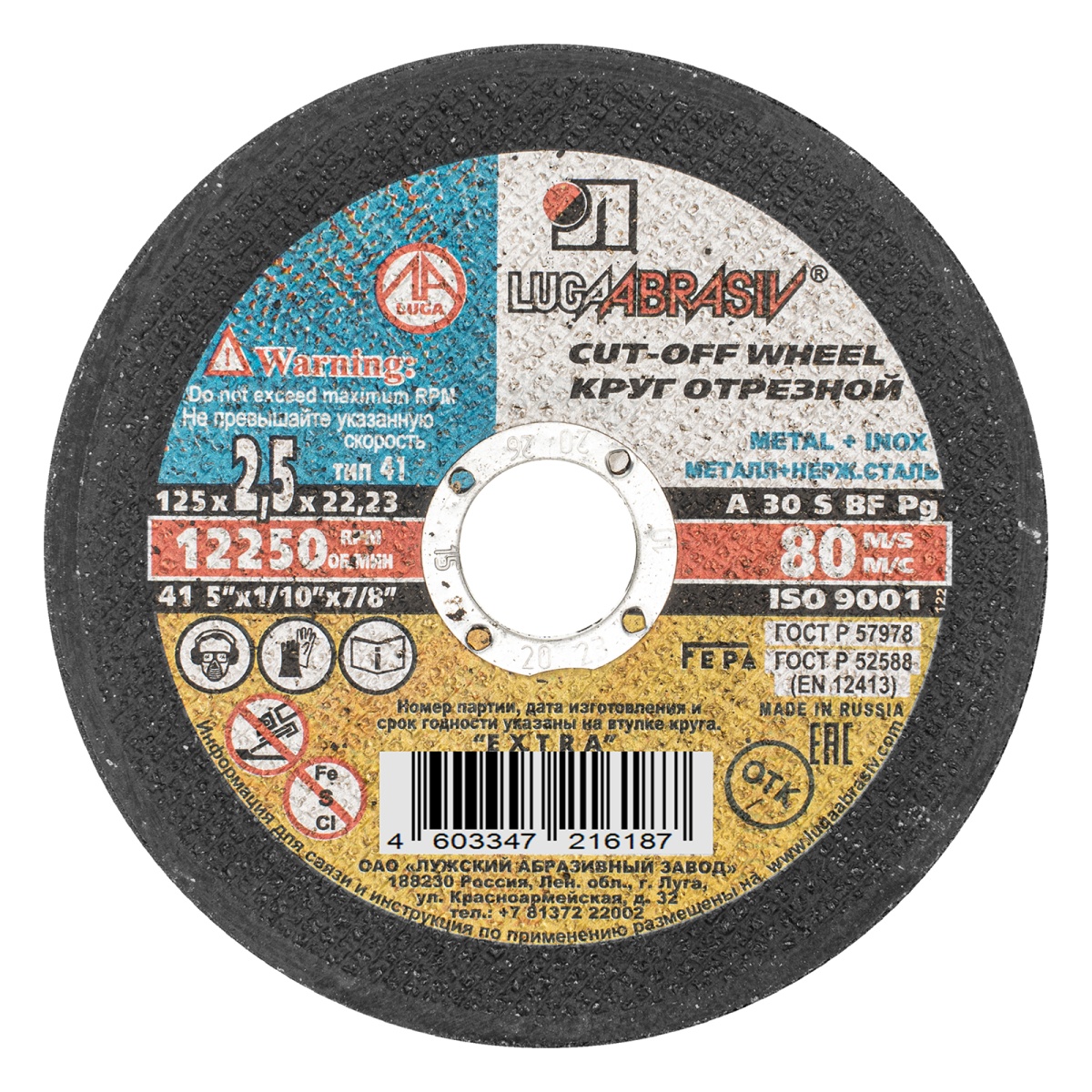 Наличие клапана для сброса давления Круг отрезной по металлу, 125 х 2.5 х 22 мм "Луга"