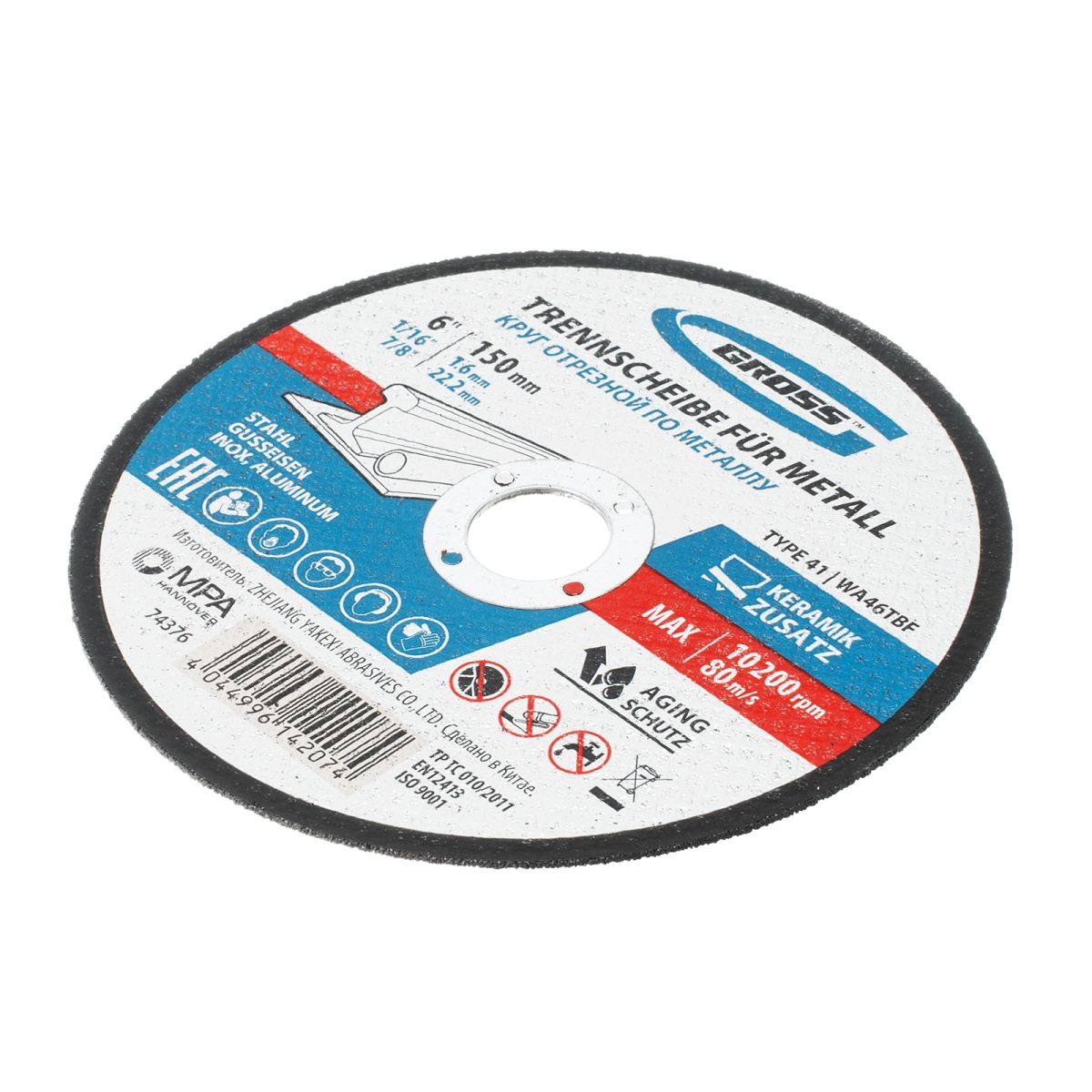 Круг отрезной по металлу, 150 х 1.6 х 22.2 мм Gross