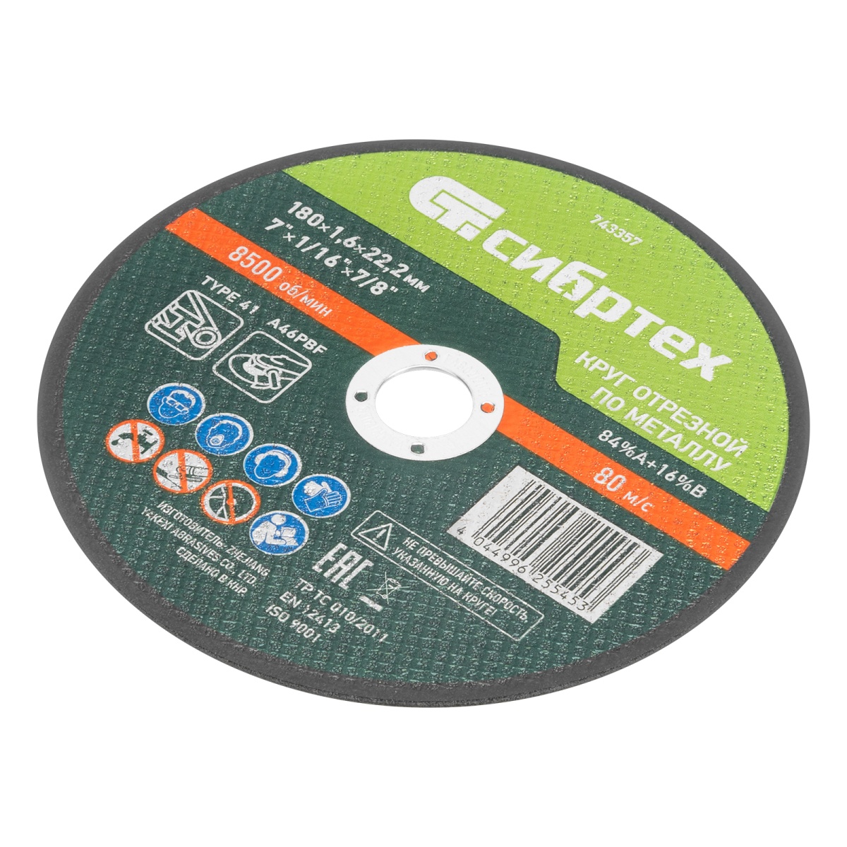 Купить Круг отрезной по металлу, 180 х 1,6 х 22,2 мм, 84%A+16%B// Сибртех V3146 по лучшей цене с доставкой - интернет магазин №1 в России
