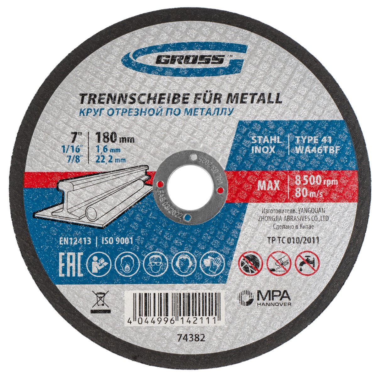 Купить Круг отрезной по металлу, 180 х 1.6 х 22.2 мм Gross V3150 по лучшей цене с доставкой - интернет магазин №1 в России