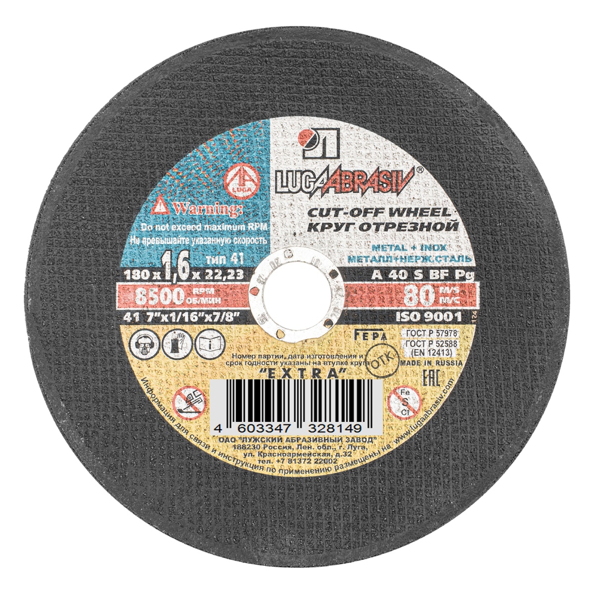 Наличие клапана для сброса давления Круг отрезной по металлу, 180 х 1.6 х 22 мм "Луга"