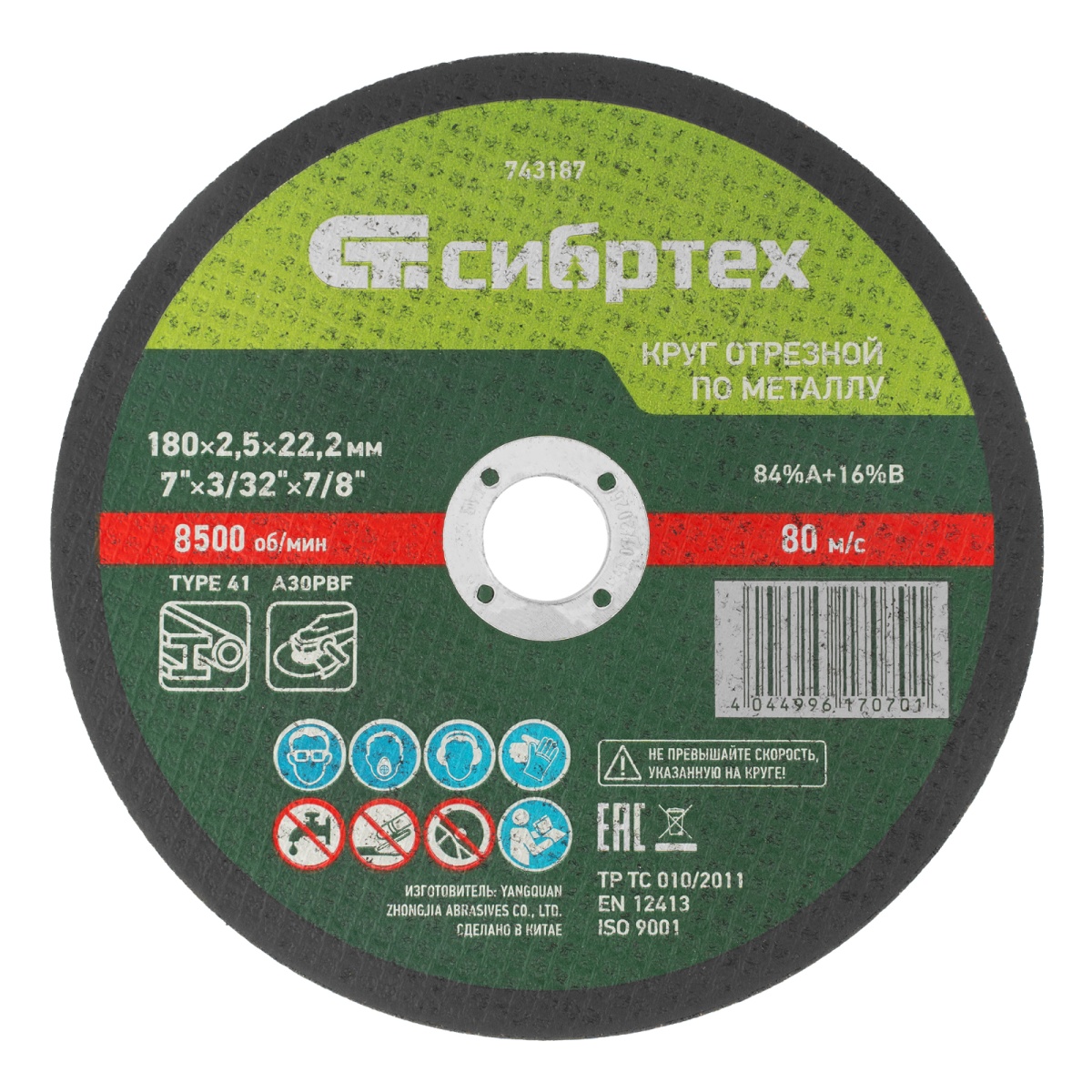 Купить Круг отрезной по металлу, 180 х 2.5 х 22.2 мм, 84%A+16%B Сибртех V3156 по лучшей цене с доставкой - интернет магазин №1 в России