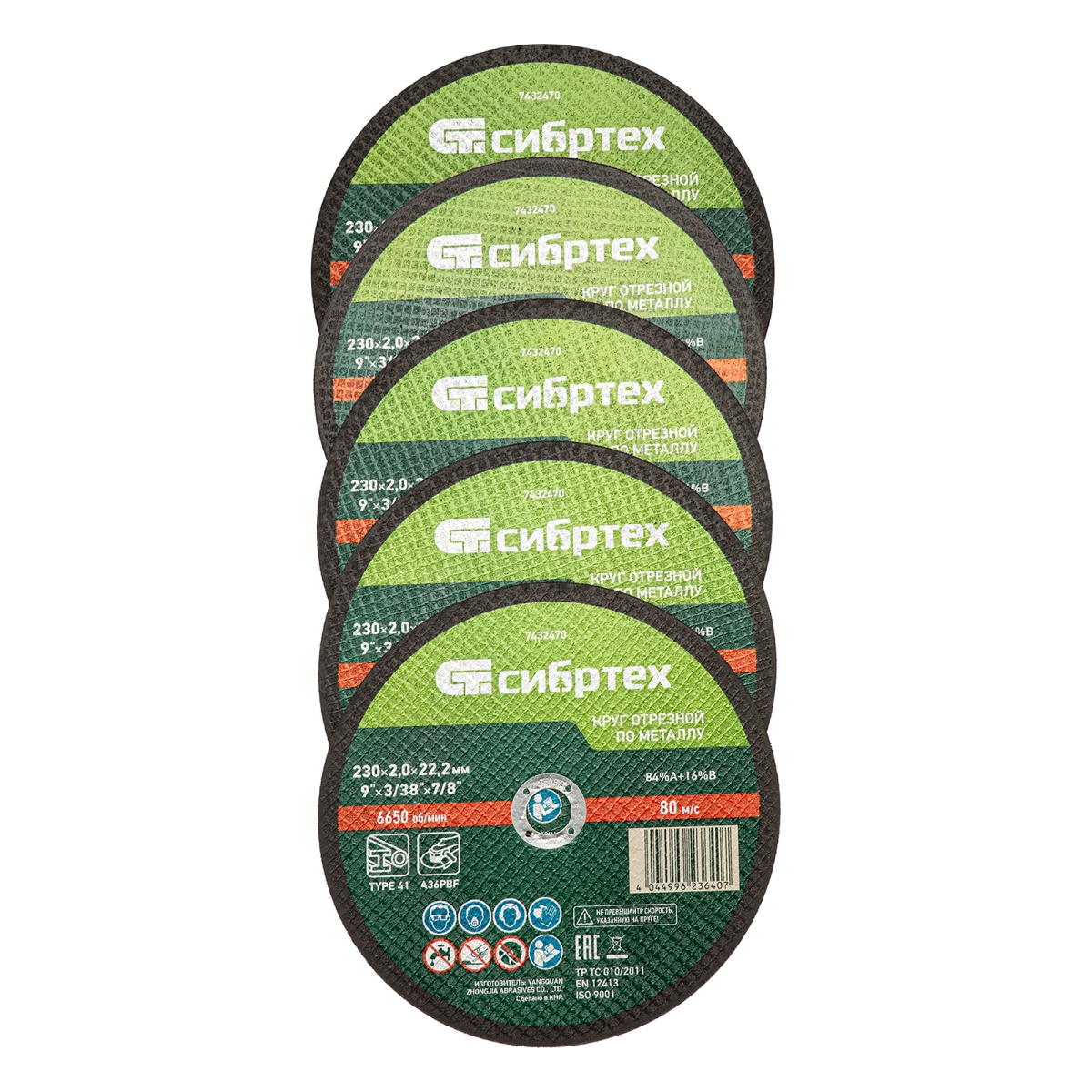 Купить Круг отрезной по металлу, 230 х 2,0 х 22,2 мм, 84%A+16%B, в метал.банке, 5 шт. Сибртех V3165 по лучшей цене с доставкой - интернет магазин №1 в России