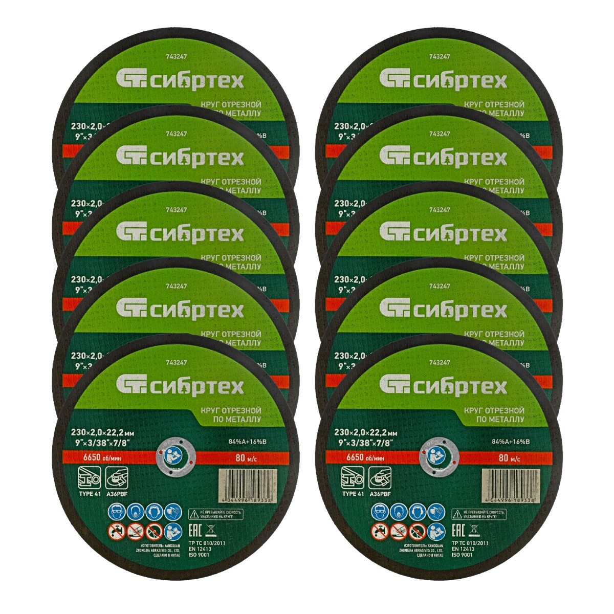 Купить Круг отрезной по металлу, 230 х 2,0 х 22,2 мм, 84%A+16%B, в пленке, 10 шт Сибртех V3166 по лучшей цене с доставкой - интернет магазин №1 в России