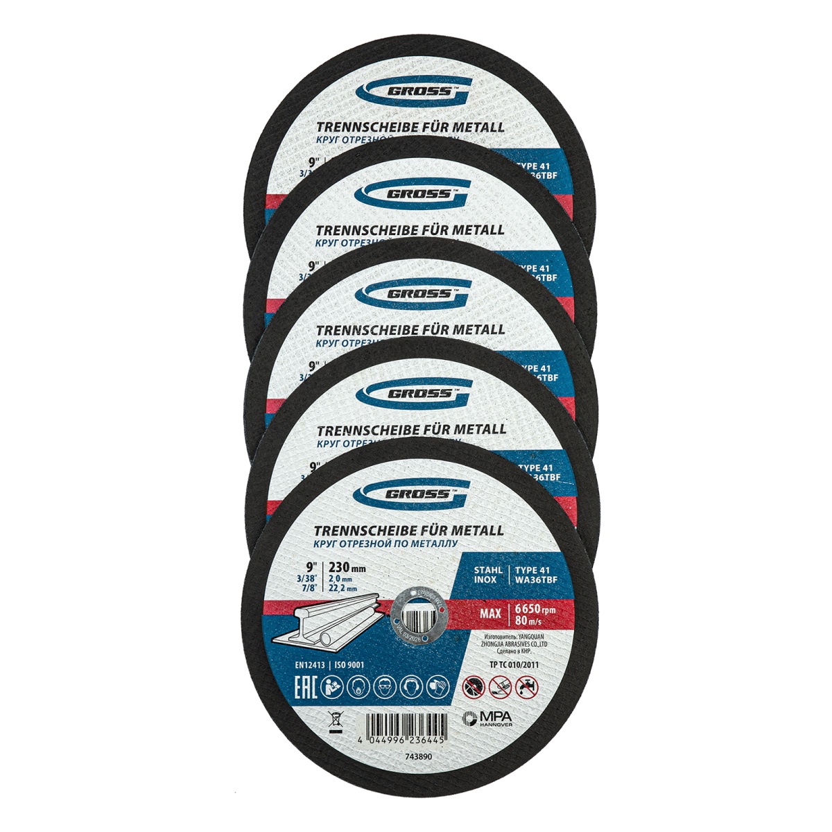 Купить Круг отрезной по металлу, 230 х 2,0 х 22,2 мм, WA36TBF, в метал.банке, 5 шт. Gross V3168 по лучшей цене с доставкой - интернет магазин №1 в России