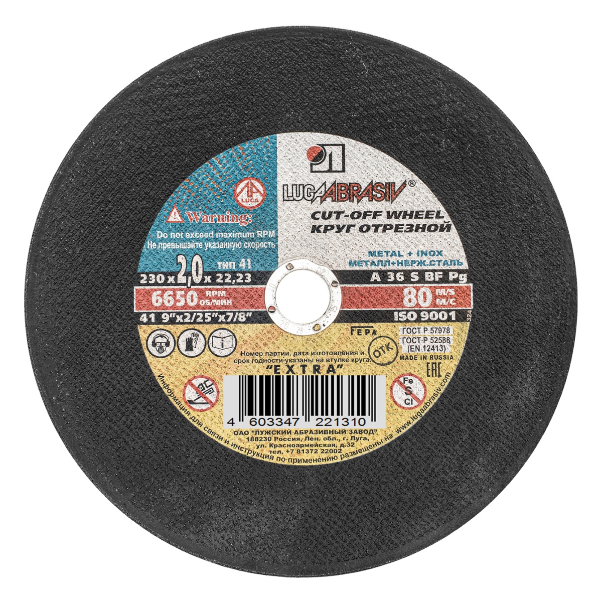 Купить Круг отрезной по металлу, 230 х 2.0 х 22 мм "Луга" V3170 по лучшей цене с доставкой - интернет магазин №1 в России