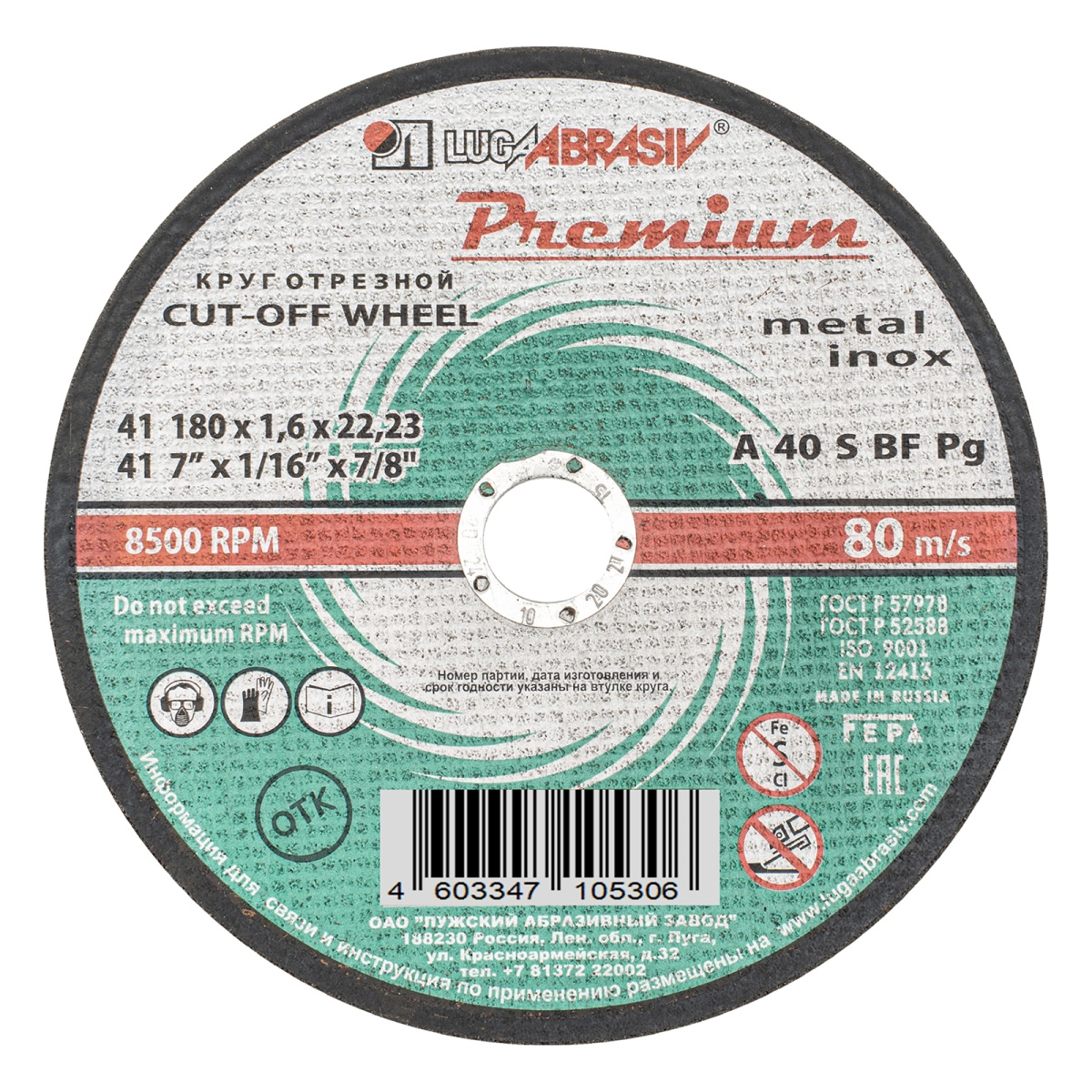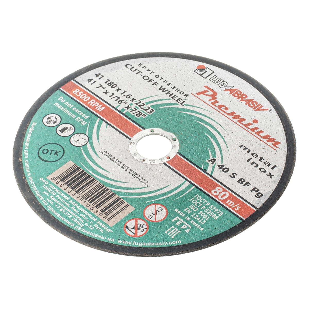 Купить Круг отрезной по металлу и нержавеющей стали, 180 х 1.6 х 22 мм, Премиум "Луга" V3089 по лучшей цене с доставкой - интернет магазин №1 в России