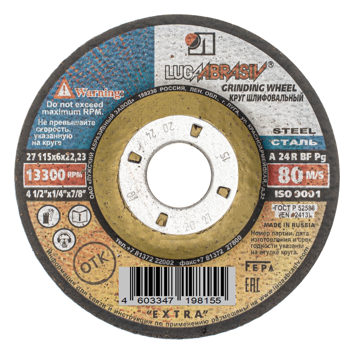 Наличие клапана для сброса давления Круг шлифовальный по металлу, 115 х 6 х 22.2 мм, "Луга"