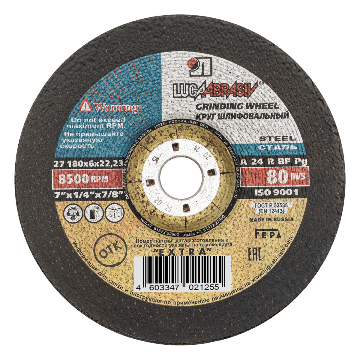 Купить Круг шлифовальный по металлу, 180 х 6 х 22.2 мм, "Луга" V3204 по лучшей цене с доставкой - интернет магазин №1 в России