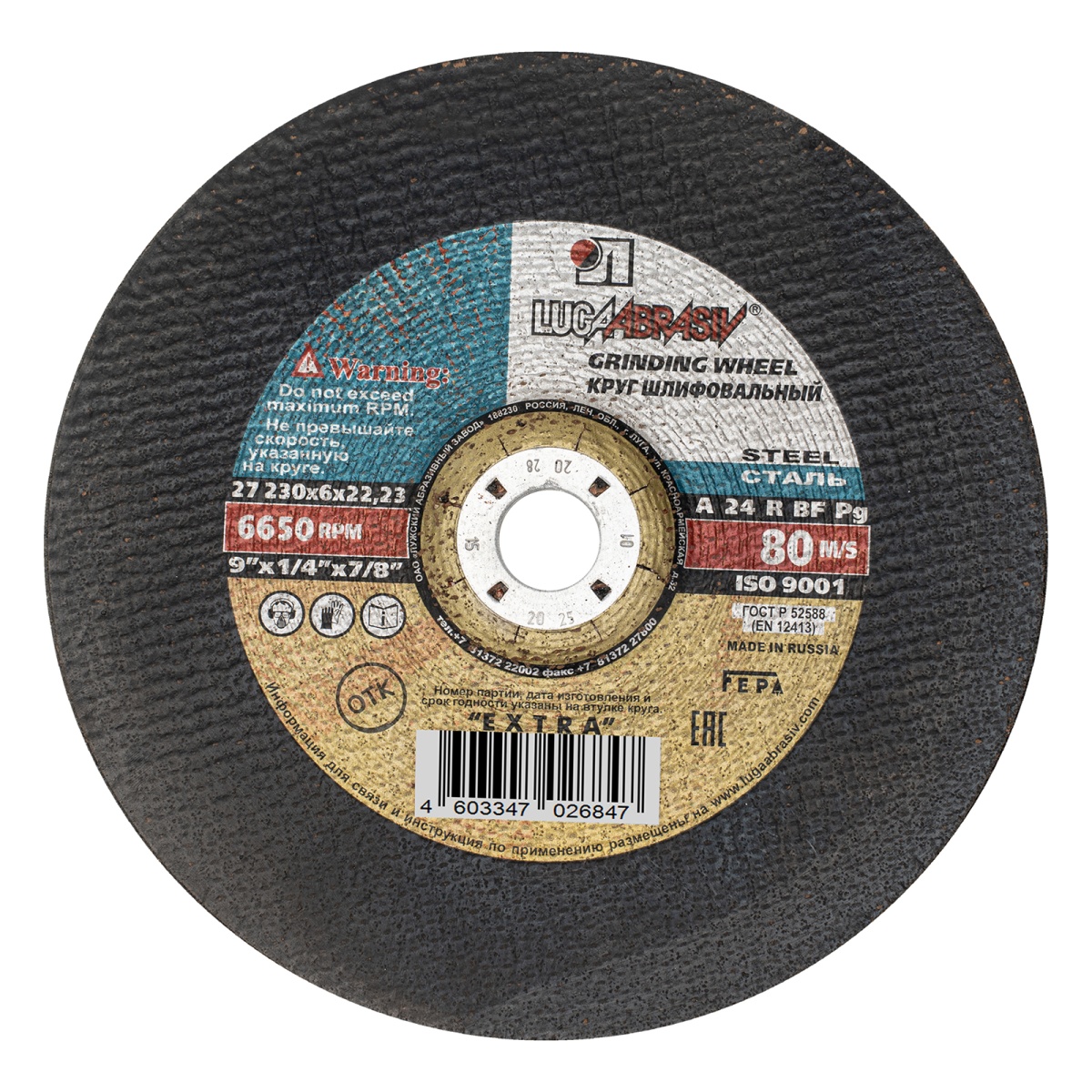 Купить Круг шлифовальный по металлу, 230 х 6 х 22.2 мм, "Луга" V3205 по лучшей цене с доставкой - интернет магазин №1 в России