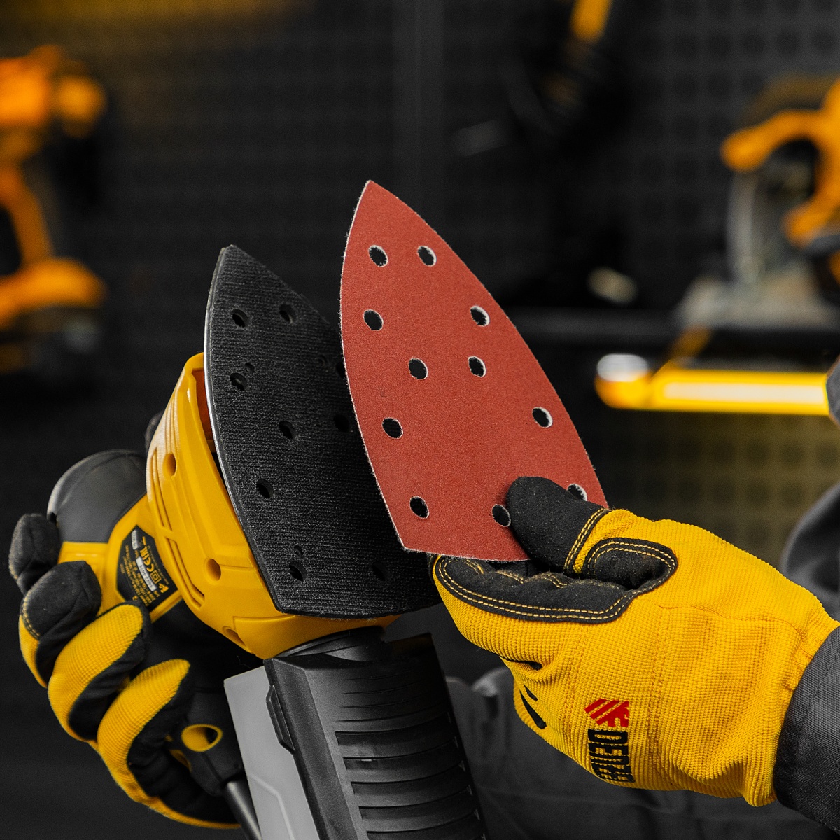 Наличие клапана для сброса давления Треугольник абразивный на ворc. подложке под "липучку", перф., P 180, 150х150х100 мм, 5 шт. Denzel