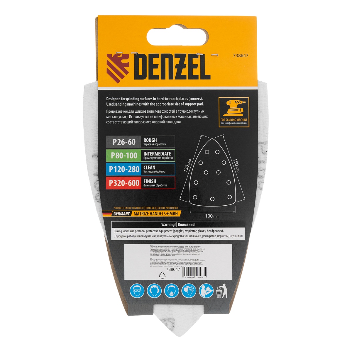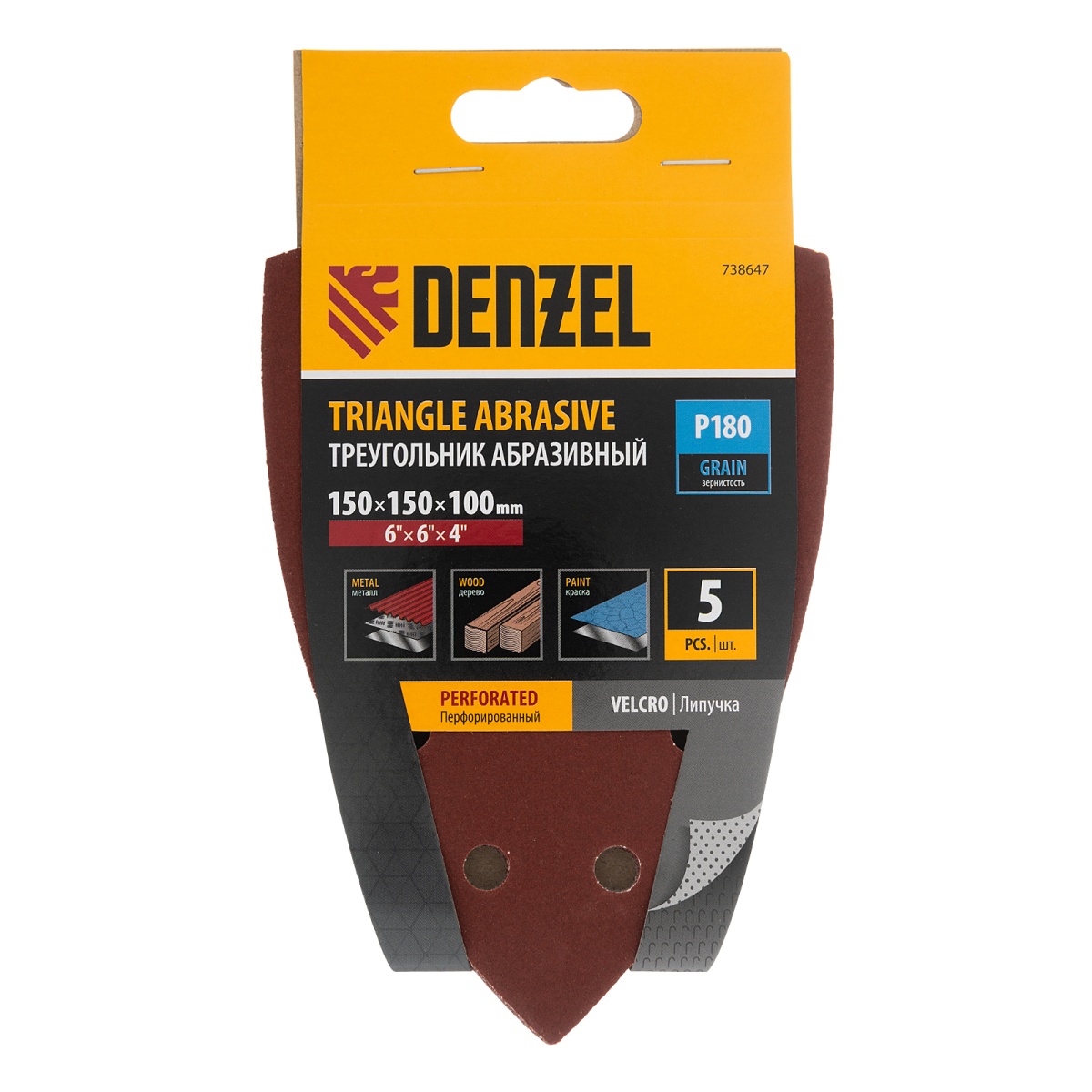 Купить Треугольник абразивный на ворc. подложке под "липучку", перф., P 180, 150х150х100 мм, 5 шт. Denzel V7238 по лучшей цене с доставкой - интернет магазин №1 в России