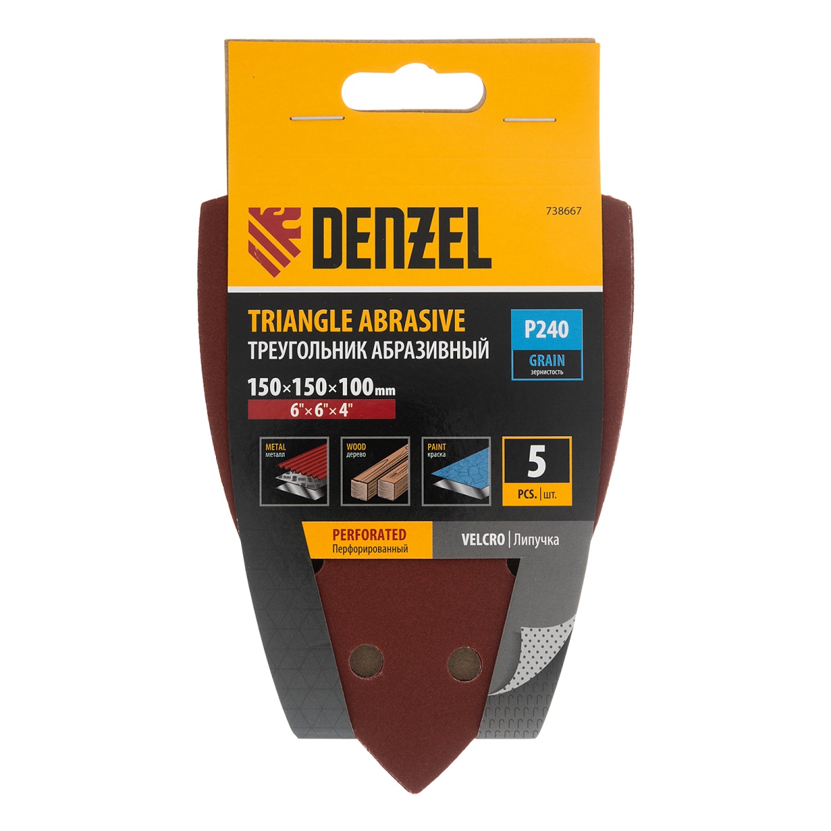 Купить Треугольник абразивный на ворc. подложке под "липучку", перф., P 240, 150х150х100 мм, 5 шт. Denzel V7239 по лучшей цене с доставкой - интернет магазин №1 в России