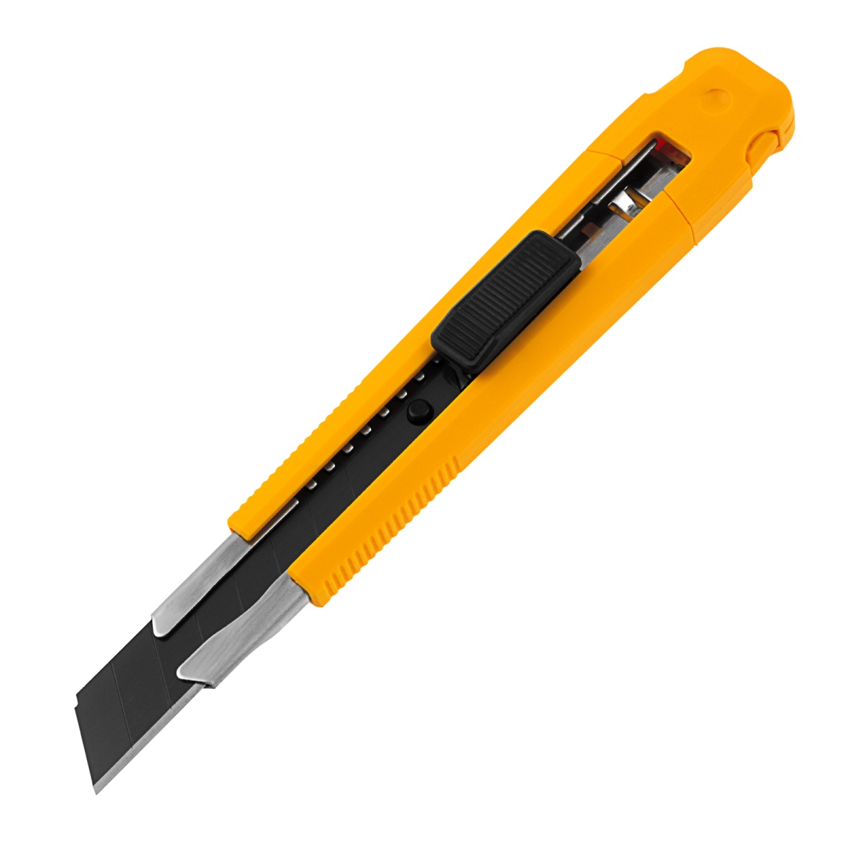 Купить Нож, 18 мм, сменное лезвие, SK4, метал. направляющая, клипса, нажимной фиксатор Denzel V4816 по лучшей цене с доставкой - интернет магазин №1 в России