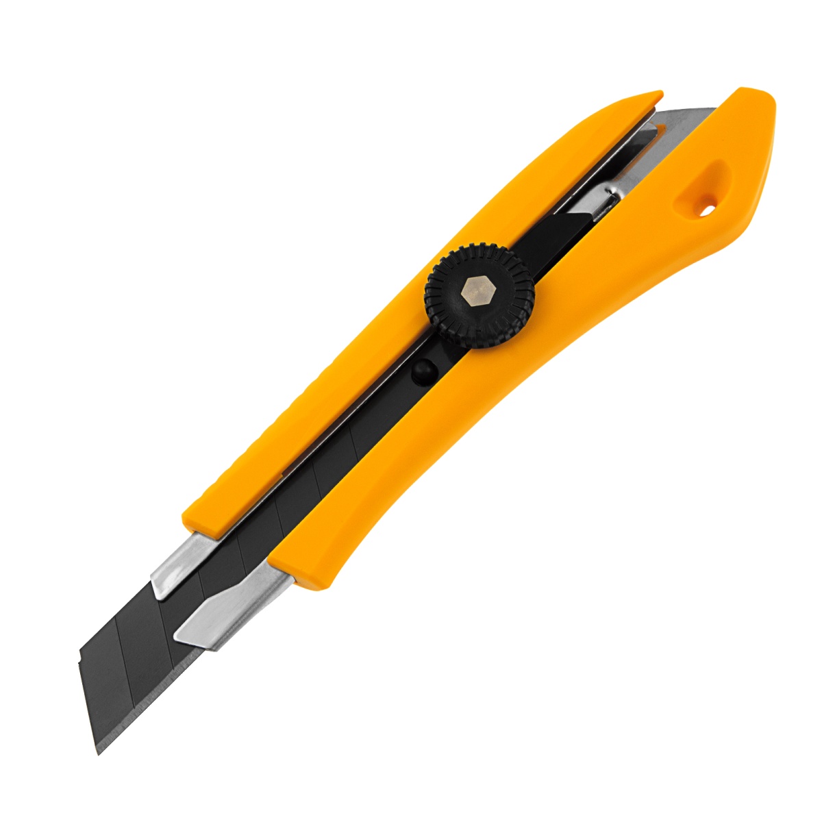 Нож, 18 мм, сменное лезвие, SK4, метал. направляющая, винтовой фиксатор Denzel