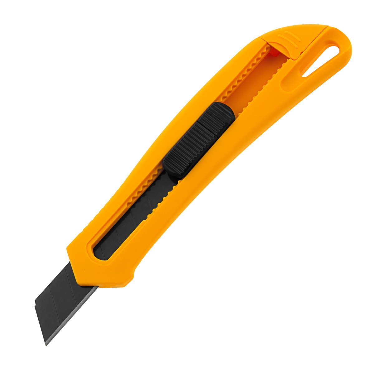 Нож, 18 мм, сменное лезвие, SK4, облегченный корпус, нажимной фиксатор Denzel