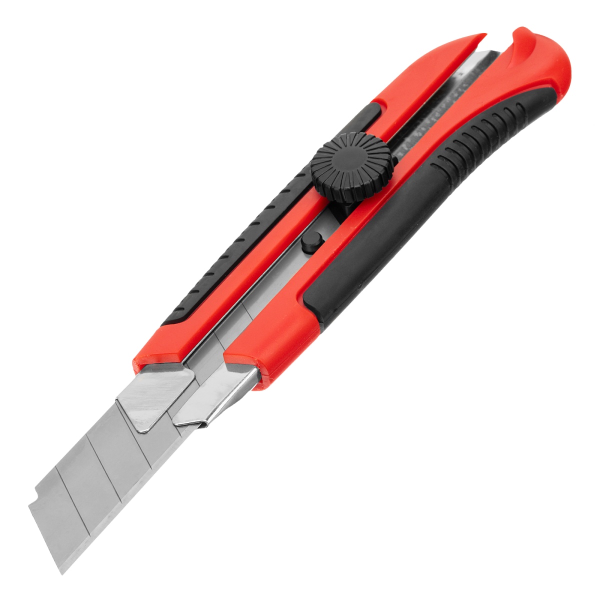 Наличие клапана для сброса давления Нож, 25 мм, выдвижное лезвие, металлическая направляющая, двухкомпонентный корпус, винтовой фиксатор, с магнитом Matrix
