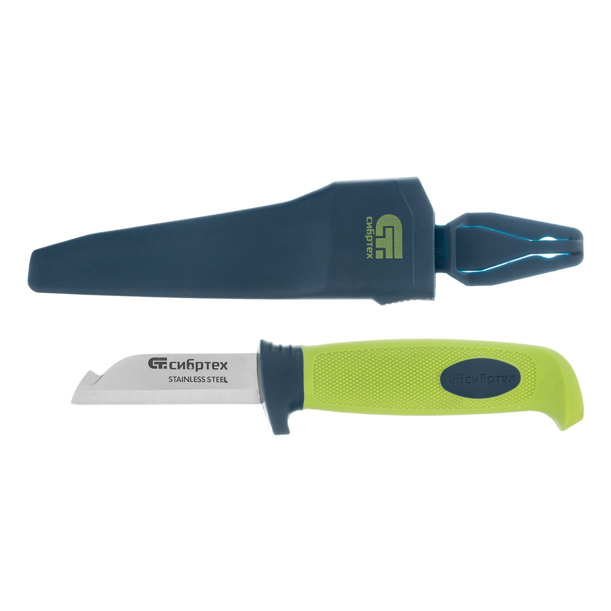 Купить Нож монтажника с чехлом, обрезиненная рукоятка, 190 мм, лезвие 67 мм Сибртех V4772 по лучшей цене с доставкой - интернет магазин №1 в России