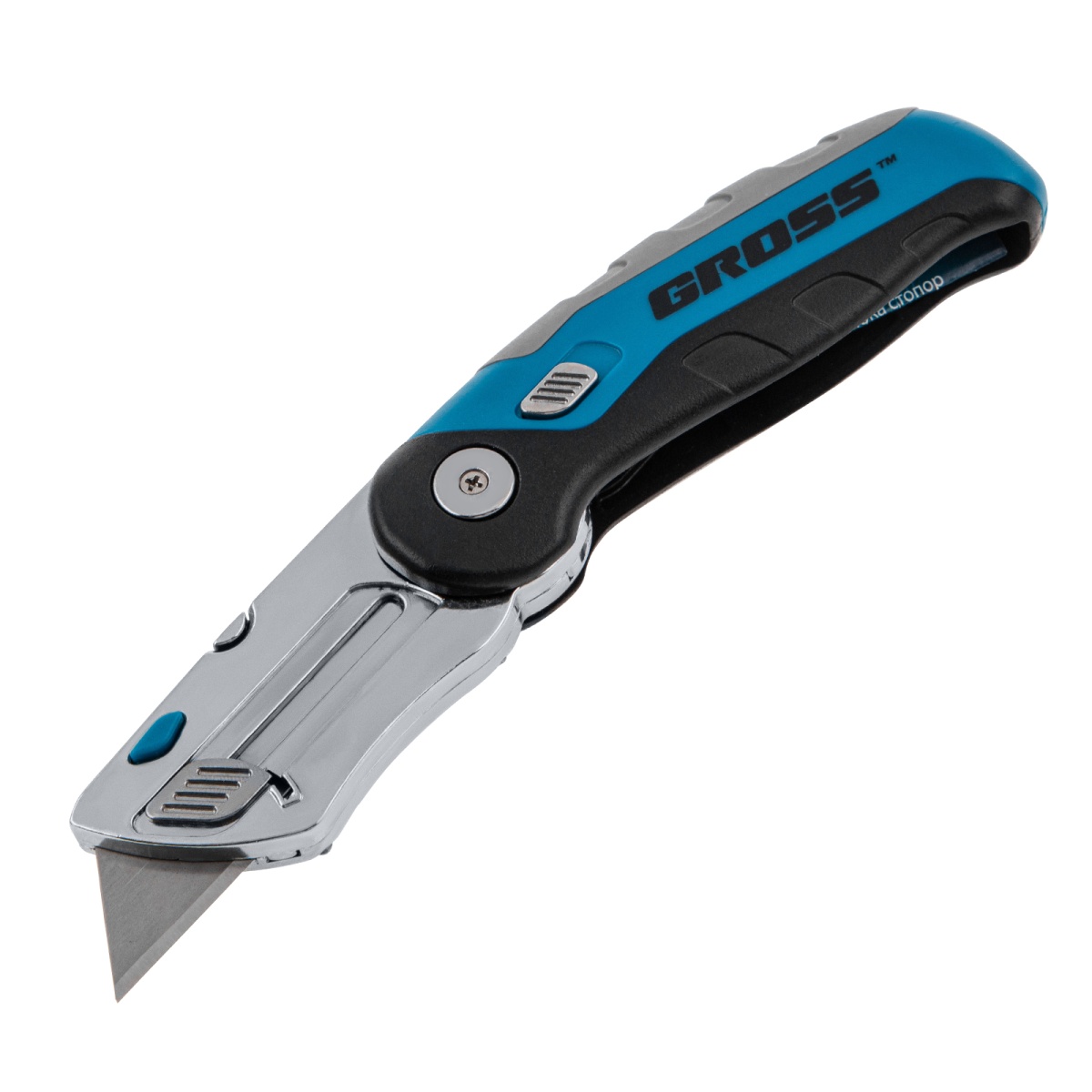 Купить Нож ремонтно-монтажныйный, складной, трехкомпонентная рукоятка, контейнер-держатель для лезвий, 175 мм, 2 запасных лезвия Gross V4776 по лучшей цене с доставкой - интернет магазин №1 в России