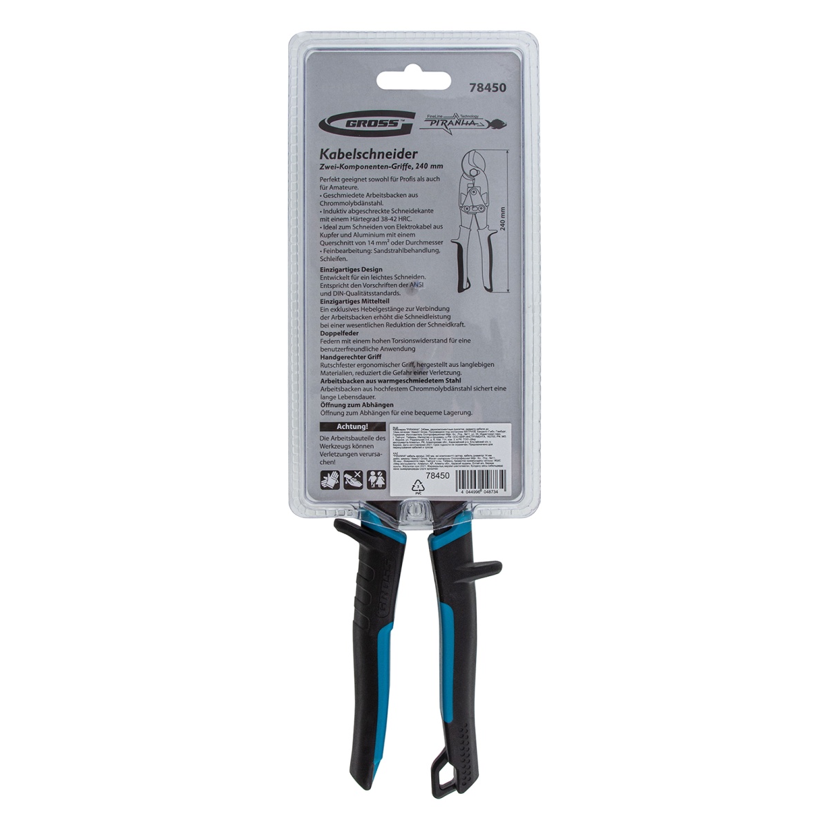 Купить Кабелерез "Piranha", 240 мм, двухкомпонентные рукоятки, D кабеля до 14 мм, сечение 14 мм2 Gross V1951 по лучшей цене с доставкой - интернет магазин №1 в России